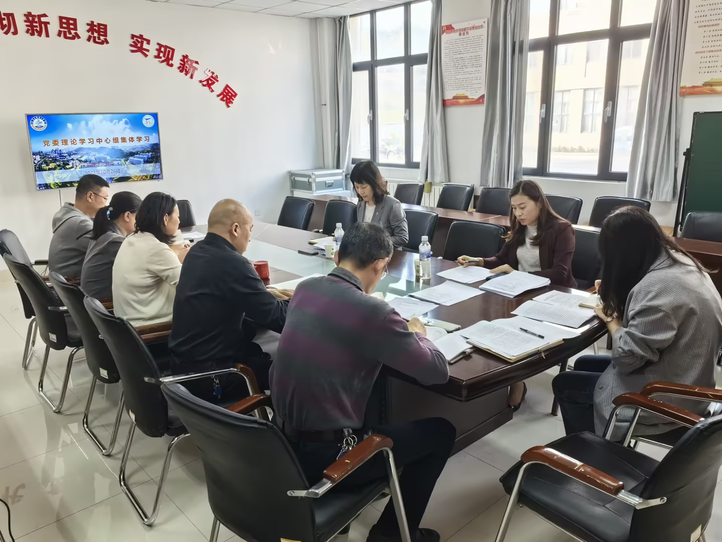 党委理论学习中心组在学院党建活动室开展集体学习,学校党委常委、统战部部长秦姣到会参加巡听旁听,会议由学院党委书记李淑贞主持。