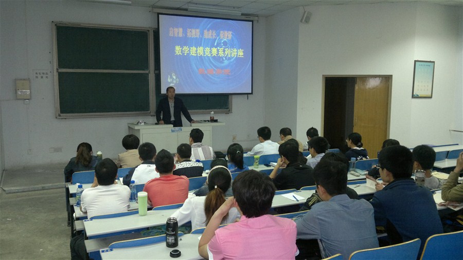 为了尽快提高数理学科竞赛参赛师生的能力和水平,进一步促进学科竞赛的发展,8x8x 决定在全校范围内开展以“夯基础、强能力、重创新、促应用”为宗旨的数理学科竞赛系列讲座活动,并制定了具体的实施方案。数学建模教研室率先发起了数学建模系列讲座活动。5月24日下午,首场讲座在崂山校区弘毅楼E303成功举行。8x8x 全体建模指导教师、部分对数学建模感兴趣的学生参加了讲座。