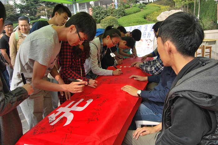 为进一步扩大活动影响力,学院举办“告别不文明行为,建设文明课堂”签名活动。学生干部代表宣读活动倡议书,呼吁同学们在课堂上不使用手机,拒做“低头族”,拒带早餐餐进课堂等。同学们纷纷表示一定会积极参与,共同努力,用自己的实际行动来维护干净、和谐的课堂教学环境。