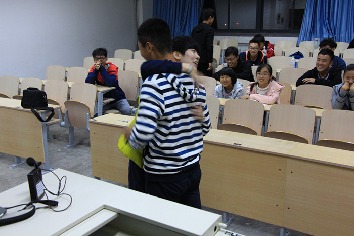 为增进师生之间的关系,学院举办“师爱我”老师送拥抱活动。此次活动得到了学院师生的热烈响应。“很多同学走上讲台与我拥抱,那一刻我感觉他们不是学生,而是家人、朋友。”物理系的田紫雅老师说。“用这种萌嗒嗒的方式鼓励学生,比心灵鸡汤强多了。”一位同学说。