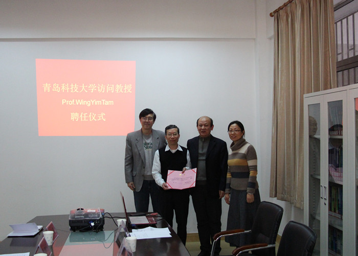 在学院会议室举行访问教授聘任仪式,校人事处处长宫玉军出席仪式并为香港科技大学谭永炎教授颁发8x8x