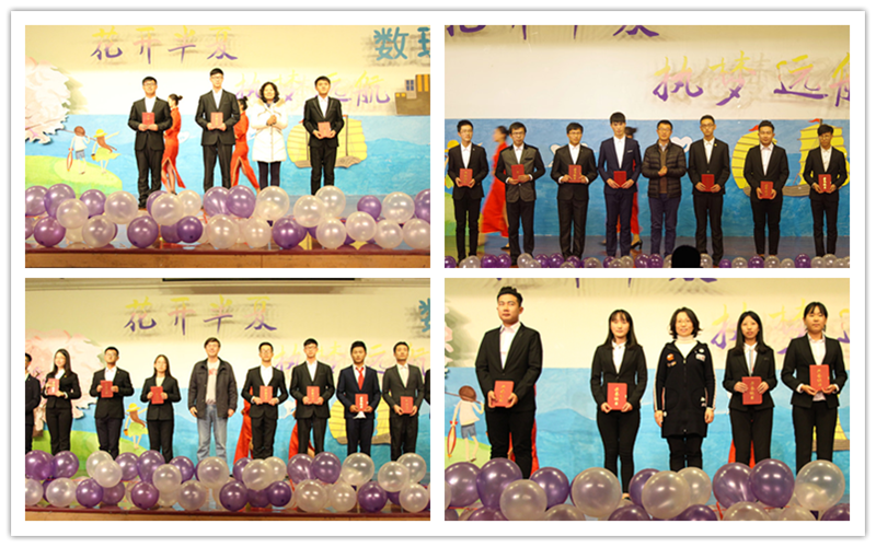 十佳团支书、十大自立自强标兵、国家奖学金等优秀荣誉称号的获得者颁奖颁发证书。刘跃宁为全国大学生数学建模竞赛、山东省第八届物理科技创新大赛的获奖代表颁发证书。隋树林和王霞分别为全国研究生数学建模竞赛、全国大学生数学竞赛的获奖者颁奖。