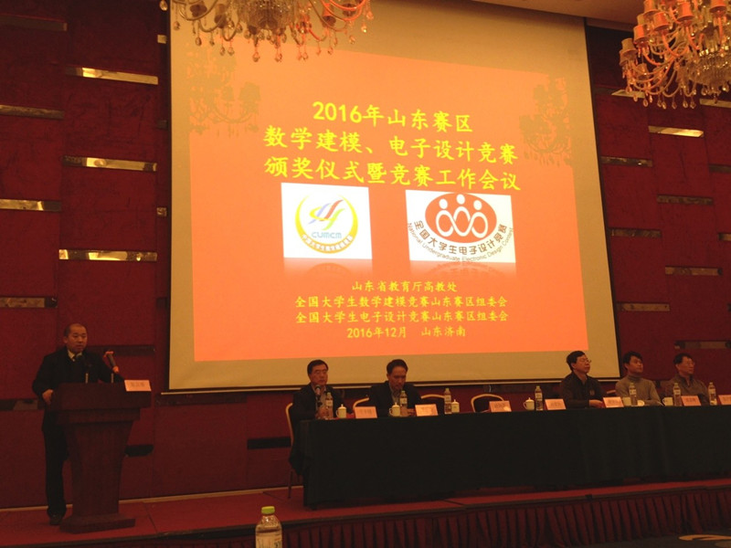 近日,2016年山东省大学生数学建模竞赛、电子设计竞赛颁奖仪式暨竞赛工作会议在济南举行,省教育厅副厅长郭建磊、全国大学生数学建模竞赛组委会秘书长谢金星教授等领导以及省内80多所高校教务处分管领导或竞赛工作负责人参加了此次会议。会议由山东大学本科生院副院长王丰晓主持。青科大作为数理建模唯一高校代表在会上做典型发言。