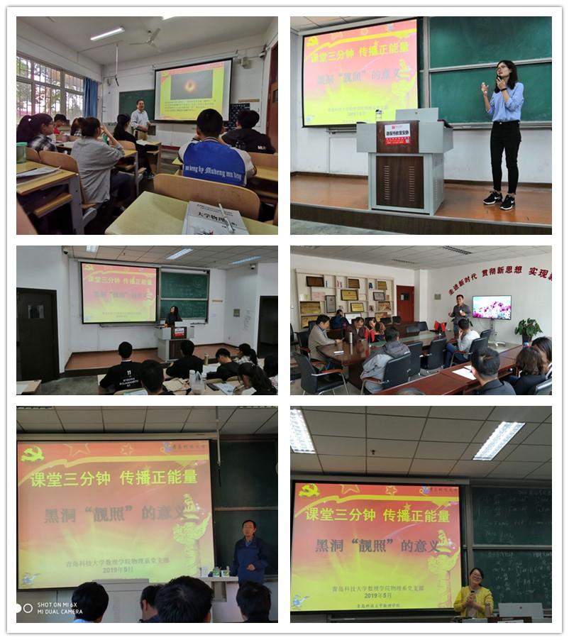 本次主讲课题为黑洞“靓照”的意义,结合最新天体物理学的发展,从黑洞的来源、发现和现实意义给予讲解。作为天体物理的专家,郭广海负责课件的制作,并担任集体备课的主讲人,详细的向全体教师讲解了黑洞“靓照”的知识。5月14日到17日,物理系教师根据集体备课内容,积极的在课堂上展开了课堂三分钟的教学活动,并与学生展开热烈的讨论。