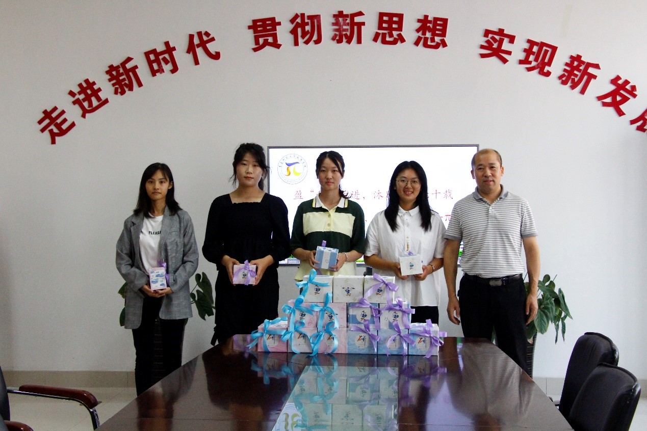 学院领导班子与新生座谈,书记李淑贞、院长杨树国代表学院赠与新生入学礼物—— “数理杯”,表达对新同学的欢迎和祝愿。杯子寓意“一辈子”——一入数理门,一生数理情。杯身为纯白色,代表着一段崭新的生活等待着他们去描绘;杯子外侧印有院徽及老师寄语,内侧为每个人的名字,举起杯子,院徽对外,名字对内,寓意对外每名同学对外都是8x8x