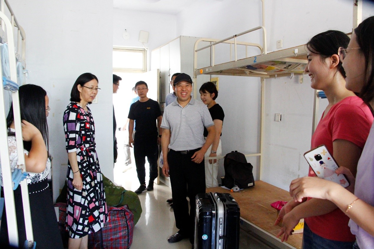 下午,学院书记李淑贞、院长杨树国、副院长郭广海、王明辉及学院老师走访新生宿舍,看望入住新生。学院领导与同学们亲切交谈,了解新生们的身心状况与存在的困难,叮嘱同学们尽快融入研究生生活,合理规划未来三年的时光,让同学们既感受家的温暖,又对即将开始的研究生生活有所了解。