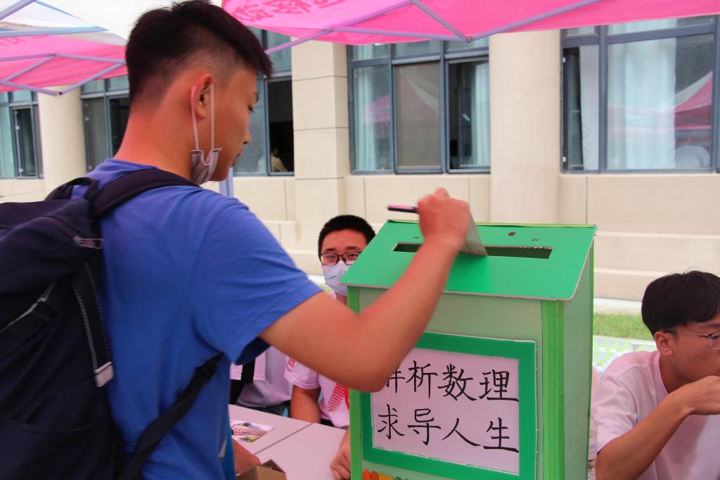 党员先锋、学子先锋、服务先锋的“π”先锋岗,学院教师、学生、志愿者参与迎新,为解决新生入校时的相关问题。教师组成的“π”先锋服务车队帮助入校新生搬运行李,提前报道新生也加入到先锋岗的志愿者中。“π”——“优秀学子风采榜”、“考研风采榜”、“科创达人展示”等,带领新生领略数理优秀学子魅力,发挥榜样引领,为新生种下奋进的种子。