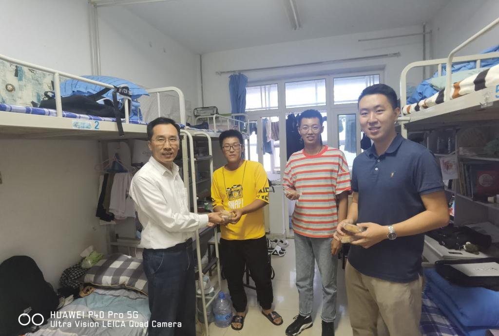 QUST标志和“明德、笃学、弘毅、拓新”校训的文字,表达学院对学生的关怀,让学生体会到“家”的温馨与幸福。走访宿舍期间,老师们亲切询问了新生入校后的学习、生活情况,鼓励同学们学好专业知识,励志强国伟业;嘱咐同学们要遵守学校疫情防控的要求,健康快乐的度过双节;希望同学们在这个不一样的中秋佳节之际,给家人打个电话,与家人分享节日的快乐。
