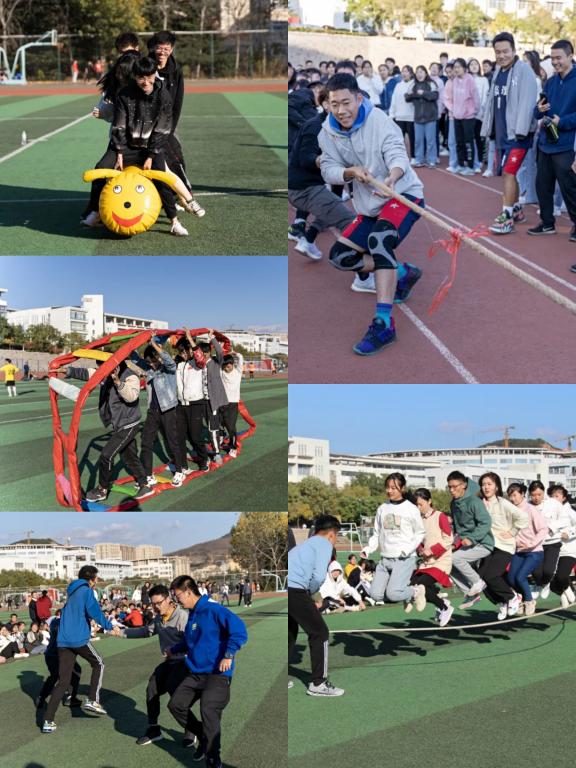 师生共同参加了跳长绳、疯狂毛毛虫、滚雪球、财源滚滚、拔河大赛等趣味运动项目。学院师生秉持“友谊第一,比赛第二”的体育精神,团结互助,奋力拼搏,不断挑战自我,赛出了成绩,赛出了风格。赛场上,队员们咬紧牙关、奋力拼搏;赛场旁, “啦啦队” 助威也不甘示弱,竭尽全力,大喊“加油”。经过激烈角逐,最终分别决出一、二、三等集体奖项,并对获奖集体进行了颁奖。