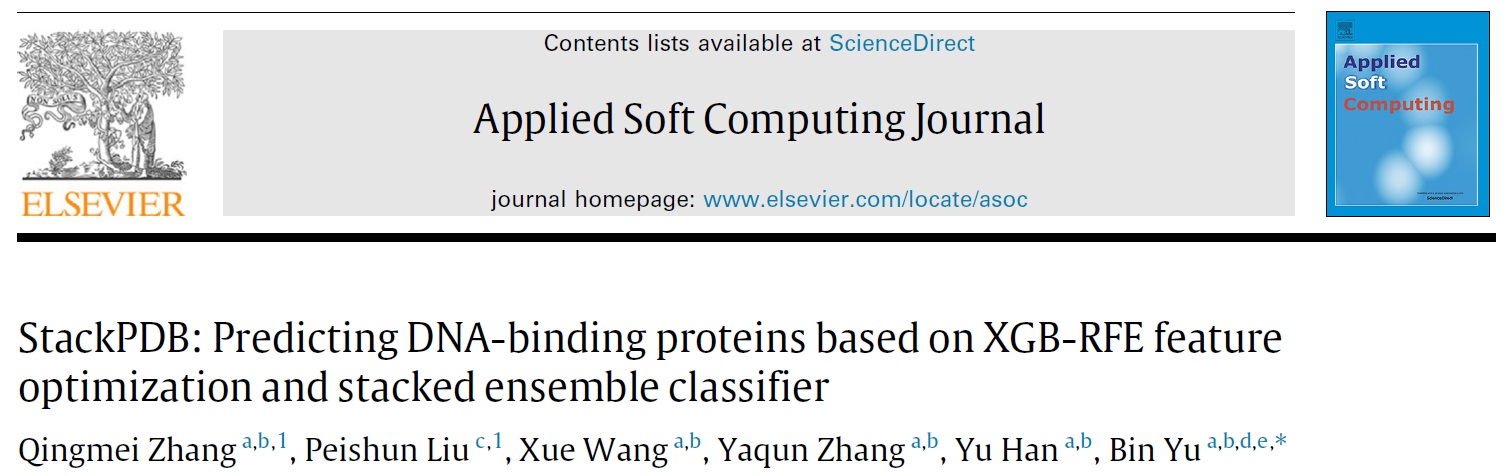 人工智能与生物医学大数据研究团队于彬副教授,在计算机科学一区TOP期刊Applied Soft Computing (IF=5.472) 上发表标题为“StackPDB: Predicting DNA-binding proteins based on XGB-RFE feature optimization and stacked ensemble classifier”的高水平论文,报道了构建预测DNA结合蛋白的人工智能算法模型—StackPDB。该模型表现出较强的泛化能力以及优异的计算稳定性。于彬副教授为论文的通讯作者,研究生张青梅为第一作者,8x8x