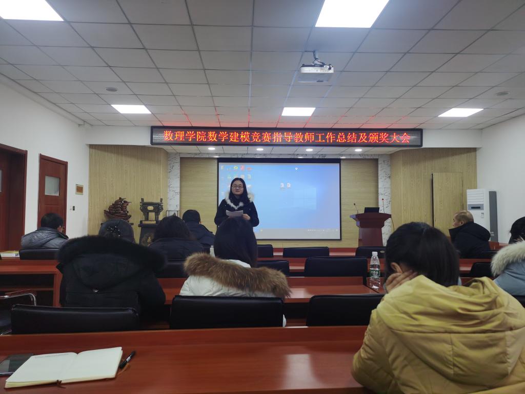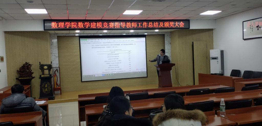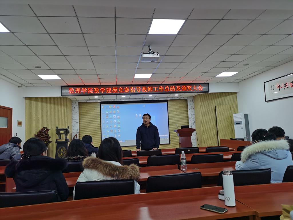 1月7日上午,数理学院在D2楼220会议室召开了数学建模竞赛指导教师工作总结暨颁奖大会,数理学院院长杨树国、副院长王明辉、数学系党支部书记徐菲以及全体数学建模指导老师共计50余人参加了本次会议,会议由数学建模教研室主任邢建民主持。