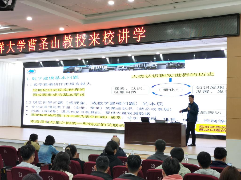 的邀请,全国大学生数学建模竞赛全国奖评审专家、全国数学建模竞赛优秀指导教师、中国海洋大学曹圣山教授在崂山校区第二报告厅,作了一场题为《数学建模国赛中一类常见问题——反问题建模方法探讨》的讲座,讲座由创新创业教育学院褚庆柱院长主持,8x8x