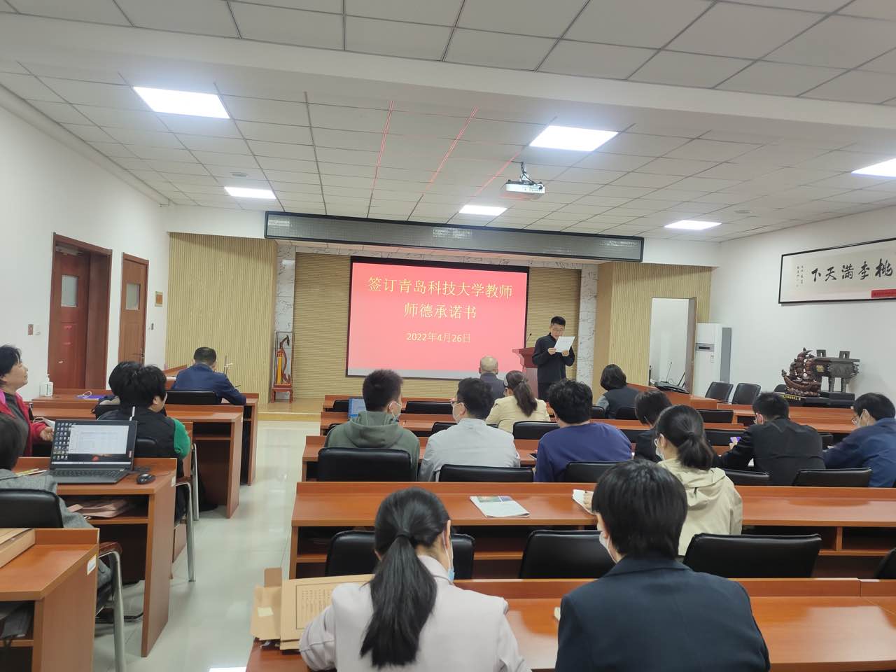 教师师德承诺书》,学院全体教职工在师德承诺书上郑重签字。