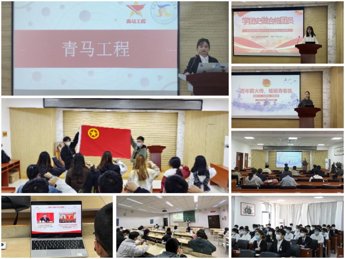 团委组织各级团学组织以“五四精神传薪火,奋斗青春展芳华”为主题,开展庄重热烈、主题鲜明、形式多样、广泛参与的系列教育活动,通过团史红色宣讲、重温入团誓词、“奋斗心声”分享会、“‘数’说团史”盲盒知识竞答等形式,唱响“高举团旗跟党走,青春之歌百年红”的主旋律,讲好“青春版”奋斗故事。组建青年马克思主义宣讲团开展青马工程系列宣讲活动,精心设计理论学习、共青团主题教育、红色故事、科创心得、读书分享等六大专题内容,力争提高学院团员青年学生的思想政治理论素养、创新能力和实践水平。
