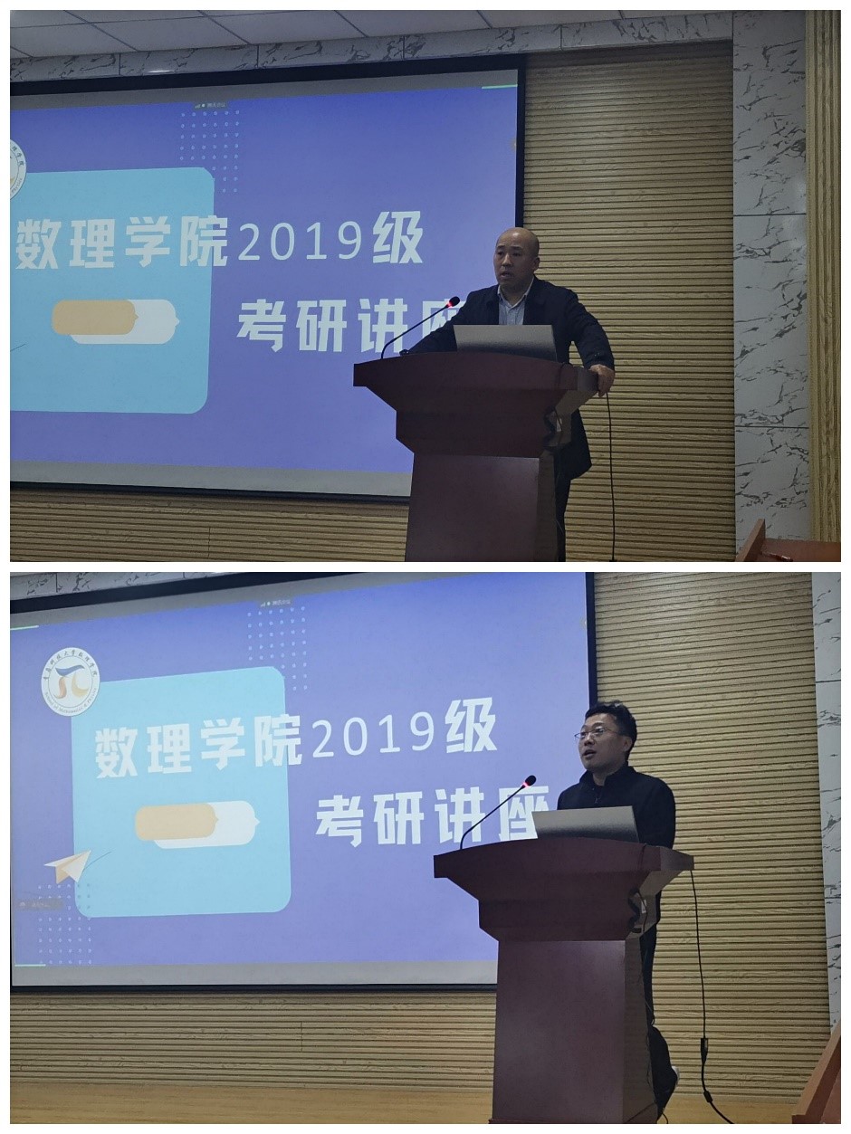 5月10日下午,2019级考研专题讲座采用线下、线上相结合的方式在数理楼220会议室举行,院长杨树国、数学系主任张瑞坤主讲,8x8x