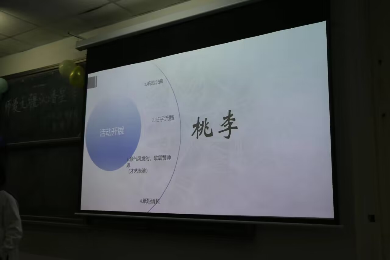 优秀班主任殷文明老师与23级数理学子共同参与,活动共分为四个板块:听歌识曲、拈字流觞、才艺表演、纸短情长。