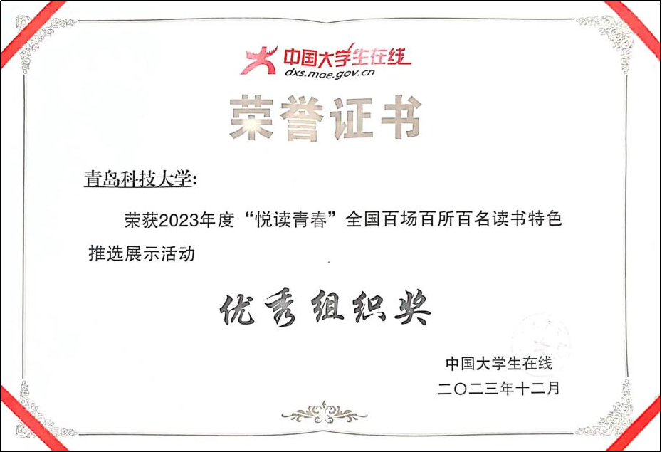 近日,由教育部中国大学生在线举办的“悦读青春”全国百场百所百名读书特色推选展示活动结果公布,我校获优秀组织奖,8x8x