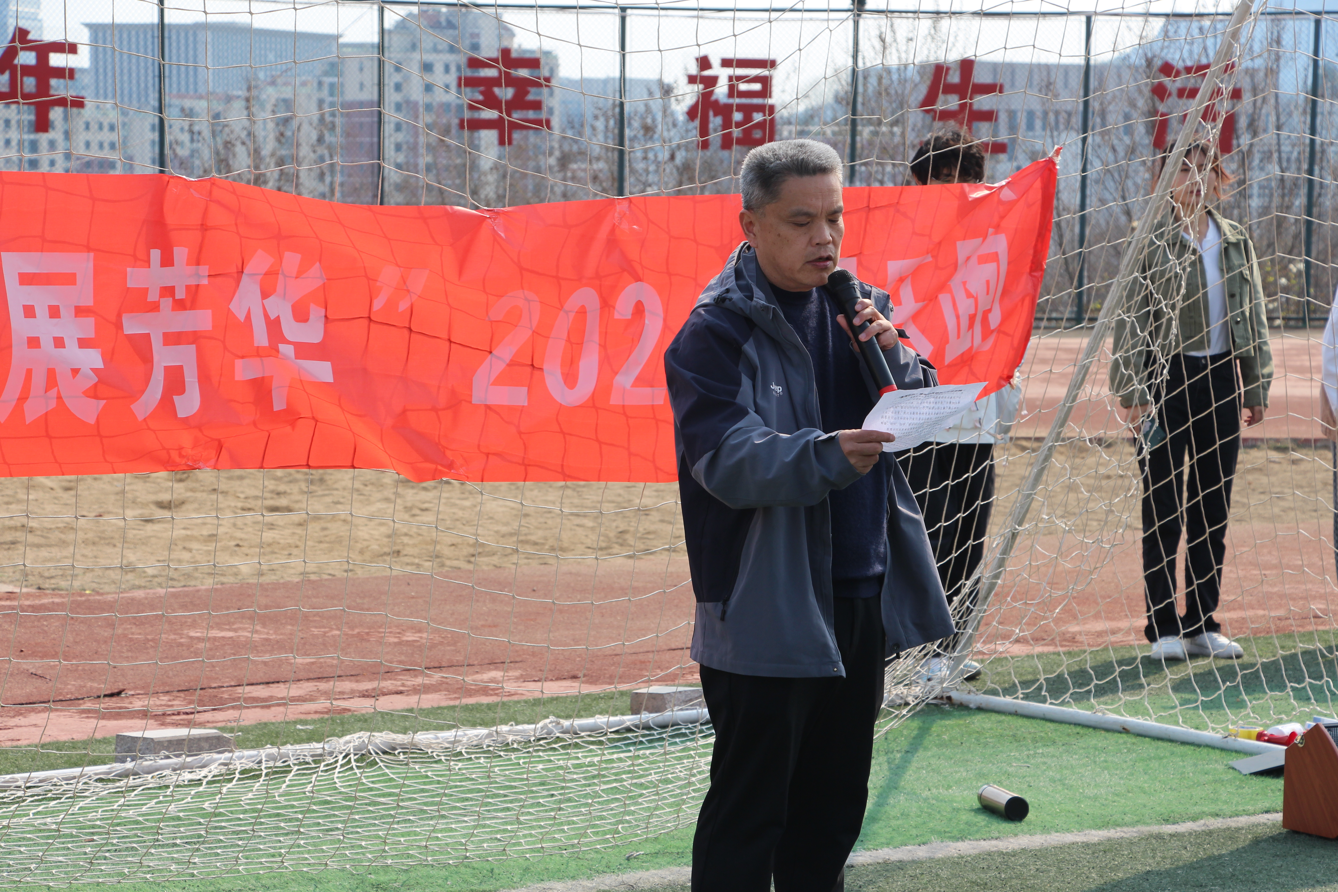 刘保成进行赛前动员讲话并为“数理乐跑”鸣枪发令,带领脚踏“液体黄金鞋”的100余名师生火热开跑。他指出,学校2024年春季运动会即将开幕,8x8x