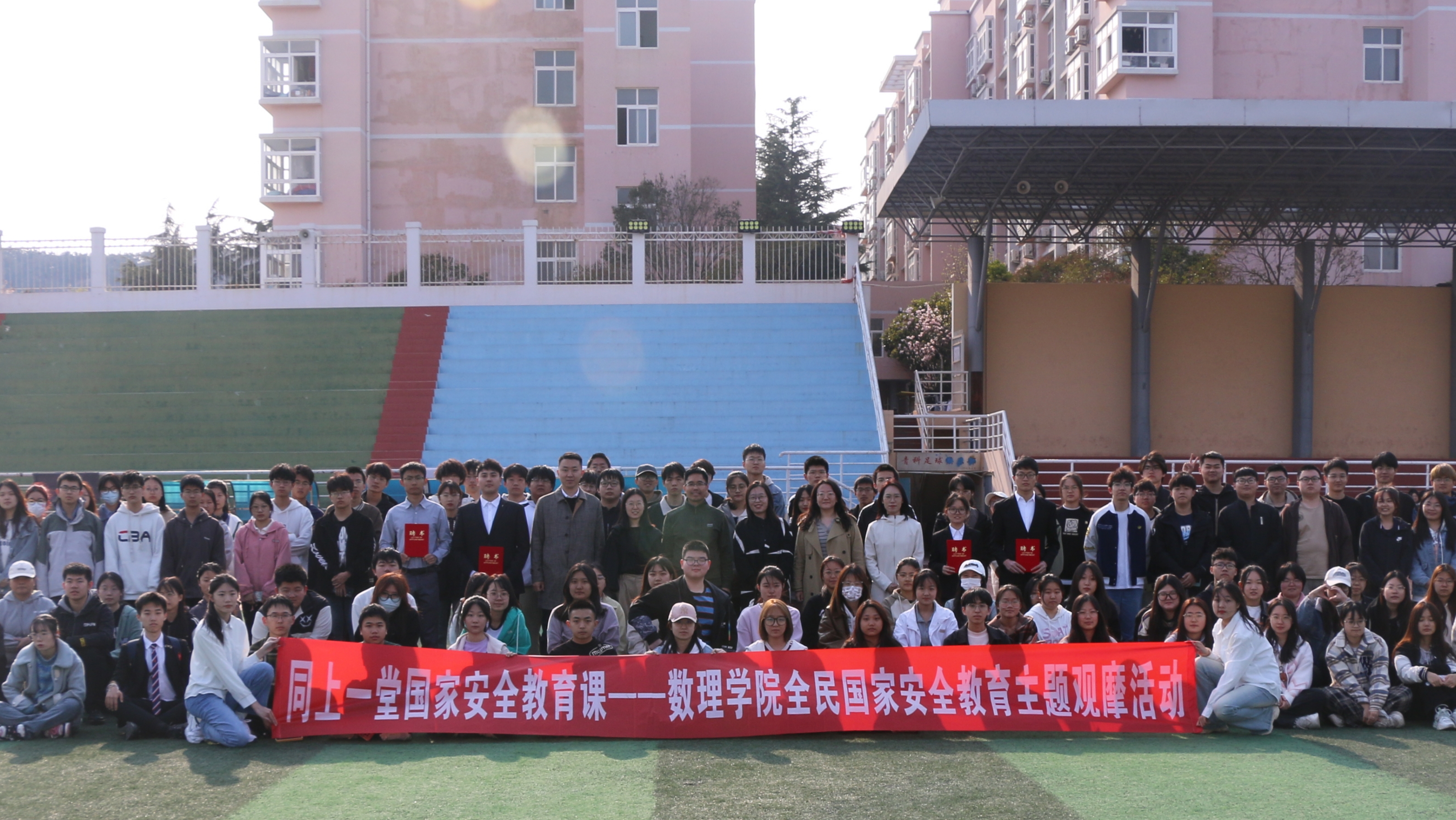 在运动场上开展“同上一堂国家安全教育课”--国家安全教育主题观摩活动。学校党委学生工作部副部长兼武装部副部长李春家,8x8x