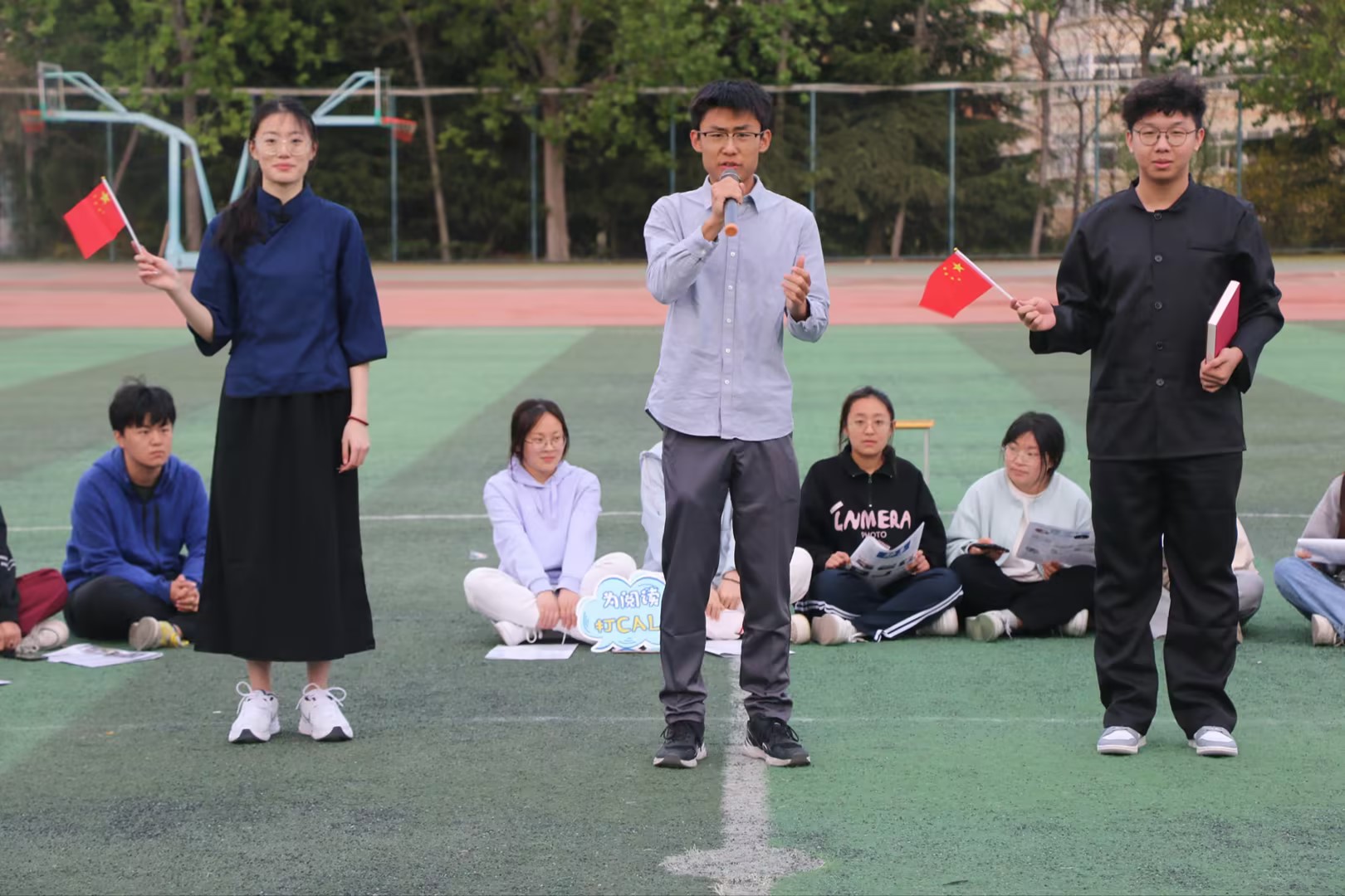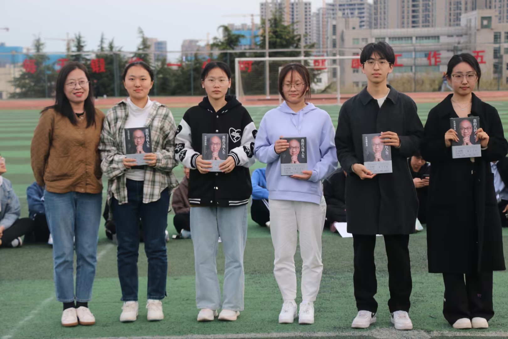 活动中,学生会执行主席刘相逸讲述了学院特色读书活动“师生同读一本书”和“党员结对同读”的开展情况。应数231班谭张政通过诗歌朗诵的形式声情并茂地分享了读书对于人生的重要意义。学生党员统计211班孟笑然、统计212班张淑敏为现场师生推荐了《觉醒年代》《我们仨》两本经典好书。“党员结对同读”代表刘清华、王依缘围绕同读书籍《马克思靠谱》畅谈个人感悟。统计221班韩莉、统计222班王皓宇在绿茵场上深情演绎经典作品《红岩》片段,情景化展示革命先烈在困难时期通过书籍汲取力量的伟大精神,现场氛围在统计222班周文皓的《征程》独唱中达到高潮。