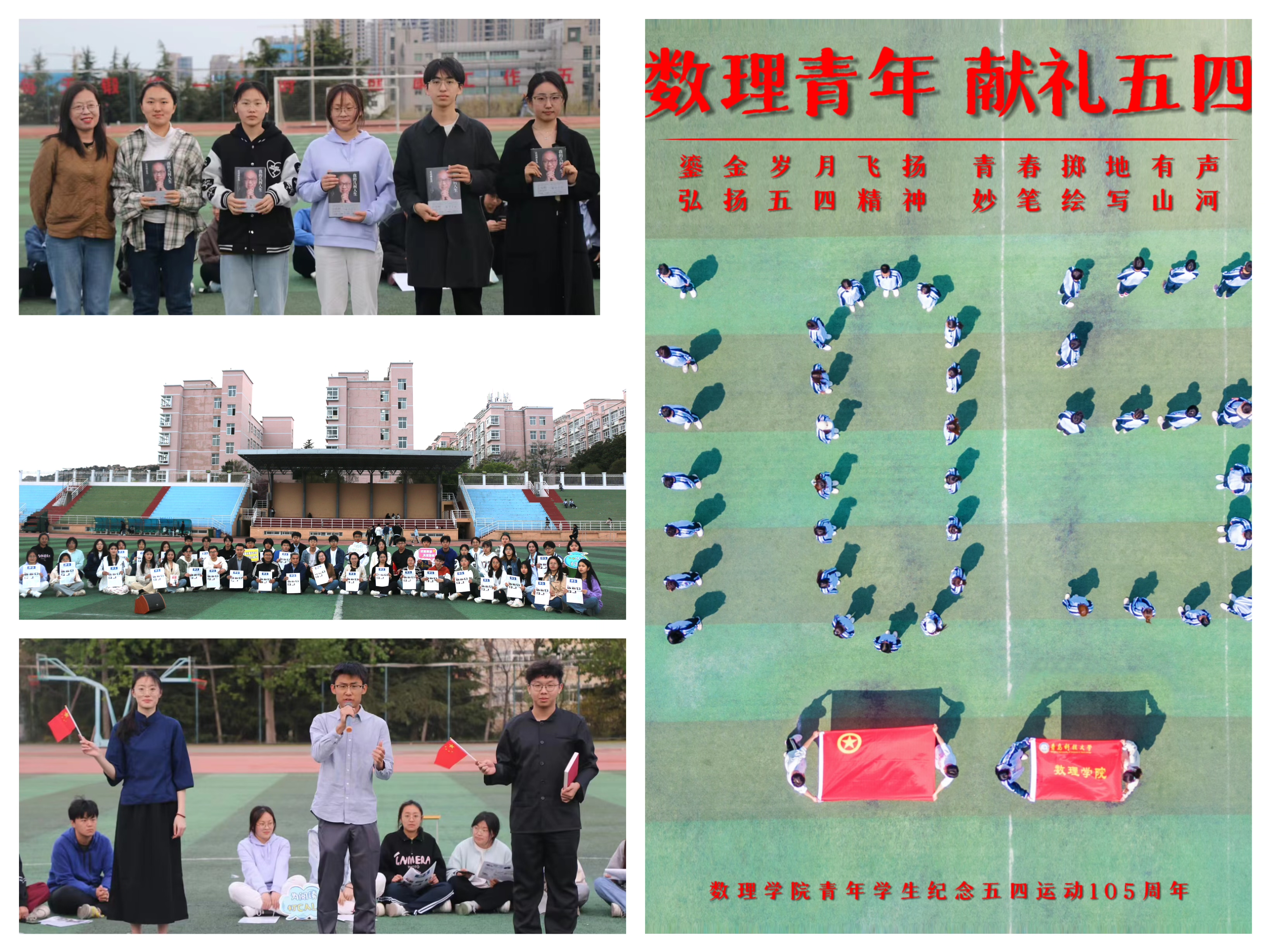 开展“百人航拍致敬青春”“青年先锋说”活动,将思政课搬到绿茵场,致敬五四运动105周年,引领青年学子以青春的名义宣誓,接受“沉浸式”精神洗礼;组织“信仰与青春同行”绿茵围读会暨《劲草》003期发布仪式、“师生同读一本书”“党员结对同读”等读书活动,勉励同学们在读书中成长、在读书中进步、在读书中坚定青春信仰。