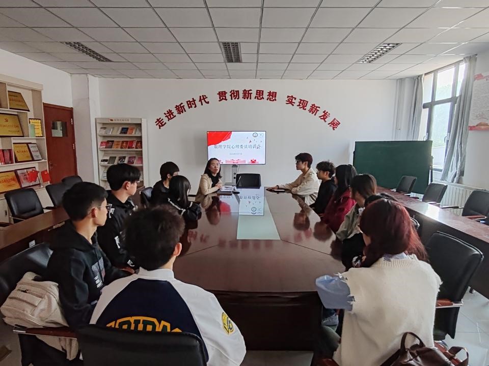 召开心理委员培训会,学院心理健康指导教师刘敏主持会议,各年级心理委员参会。