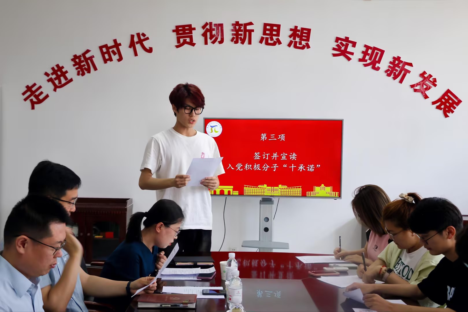 召开入党积极分子思想汇报会,发布《学生入党积极分子“十承诺”》。学校党委常委、组织部部长朱敬义,党委正处级组织员王磊,组织部副部长卢一宾等到会指导,并与2023级首批入党积极分子集体谈话。