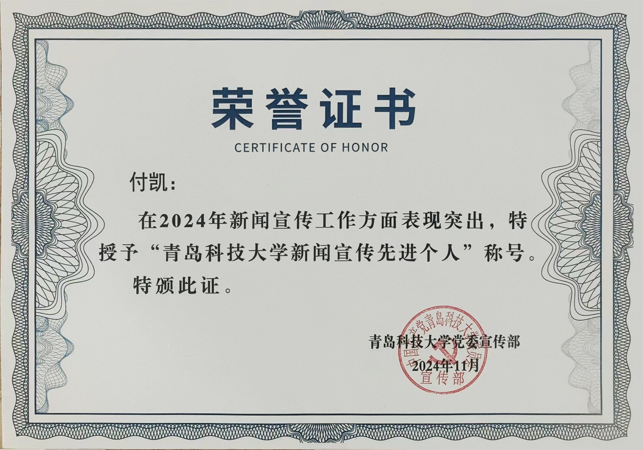获评“新闻宣传先进单位”,学院宣传干事付凯获评“新闻宣传先进个人”。