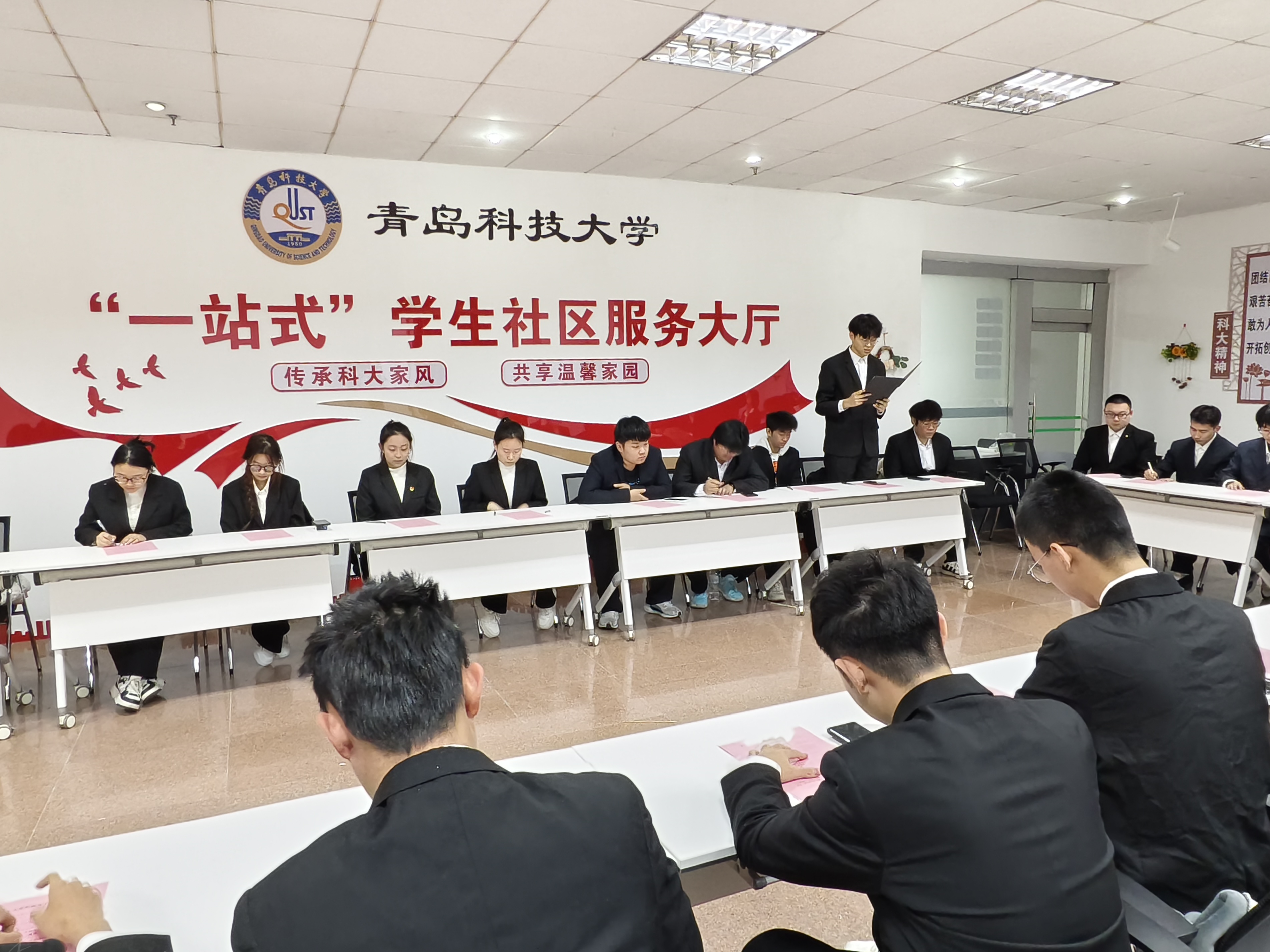 召开《入党积极分子“十承诺”》签署会,学院党委书记刘保成、党委副书记兼副院长李雯雯、团委书记兼学工办主任付凯到会指导。