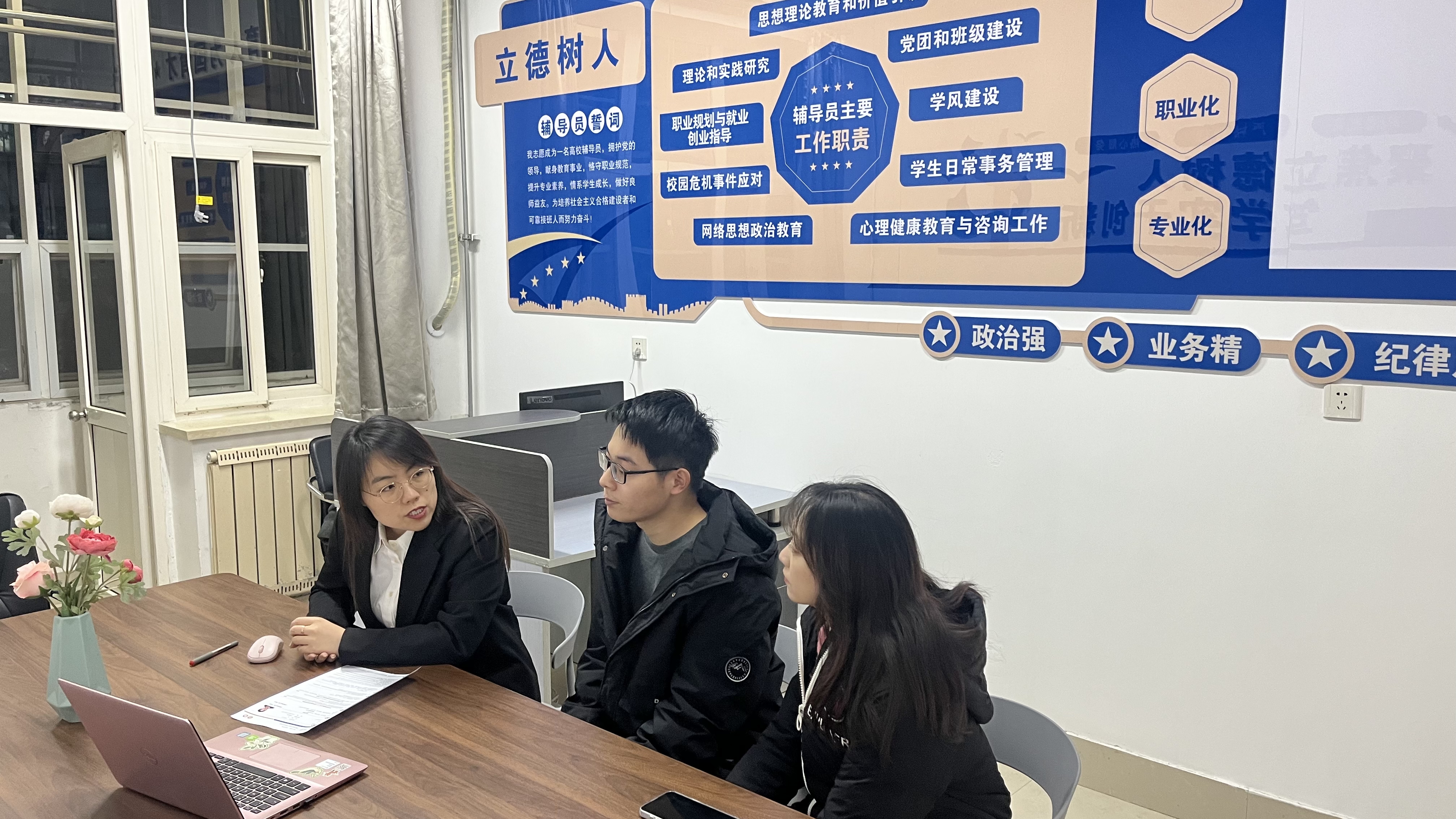 “简历问诊”活动中,辅导员为每位毕业生从格式排版、内容撰写等方面进行了细致入微的修改,还结合每位毕业生的专业背景和求职意向,提供了个性化的优化建议。“面试一对一”活动中,由辅导员担任“考官”,依据毕业生求职意向,从面试题库中随机抽取问题,并与“面试者”进行交流。通过模拟真实的面试场景,让毕业生们提前感受面试氛围,帮助毕业生们明确自身的优势和不足,并针对性地进行改进。