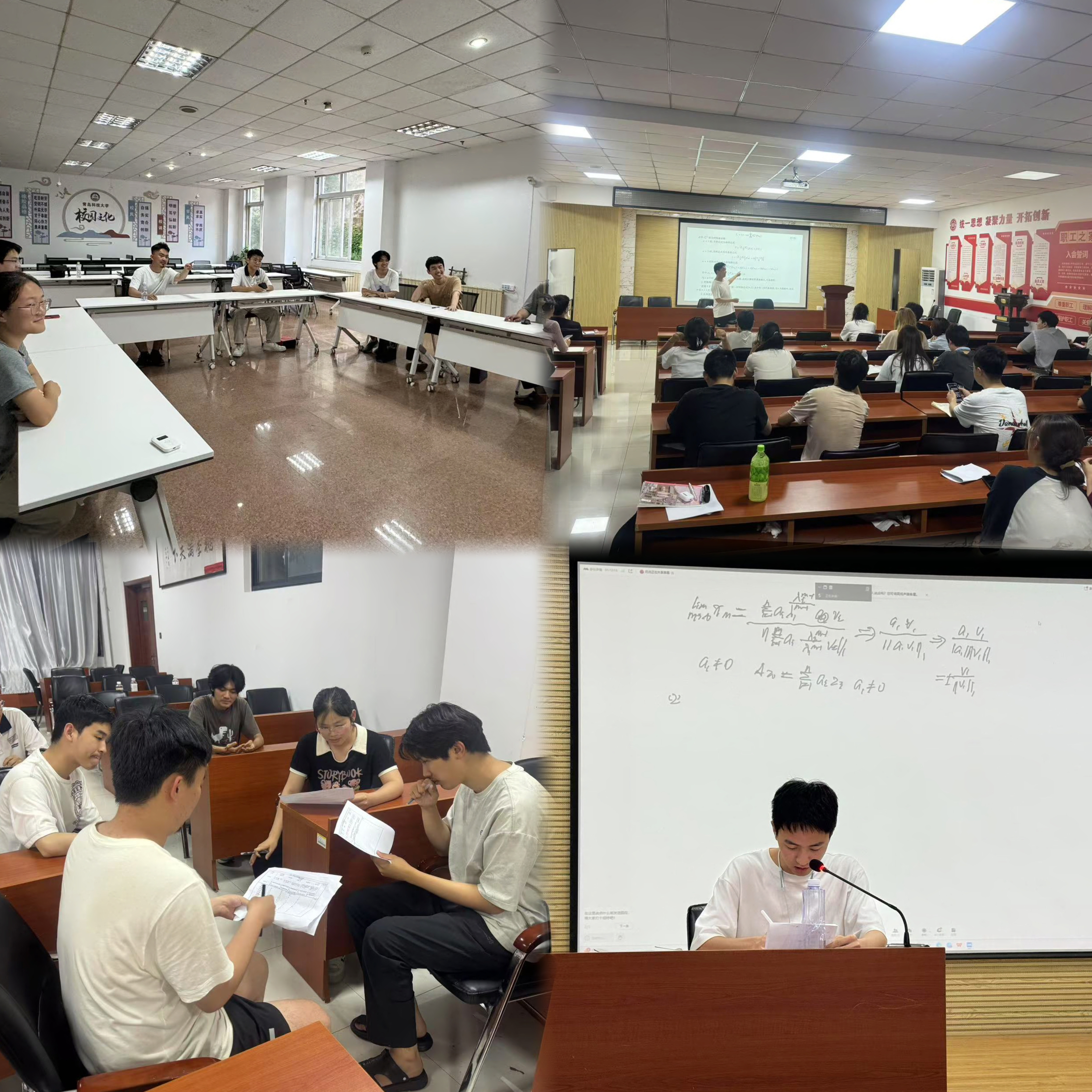 数学方向主要负责人孟祥飞就“朋π课堂”板块的运行情况作了专题汇报。孟祥飞聚焦于如何进一步优化模块题目设计这一核心问题,提出了具体的改进思路。他阐述了如何使题目设置既能保持数学的严谨性,又能激发同学们的兴趣,力求做到“深入浅出”,并增添学习的趣味性,以期吸引更广泛的同学参与,提升“朋π课堂”的吸引力和影响力。物理方向主要负责人张景鹤对共同体内部的考核评价机制提出了优化建议。他详细介绍了拟定的方案,旨在通过更科学、合理的考核指标,客观公正地反映成员的付出与成长,激励成员们不断进步,共同推动共同体良性发展。