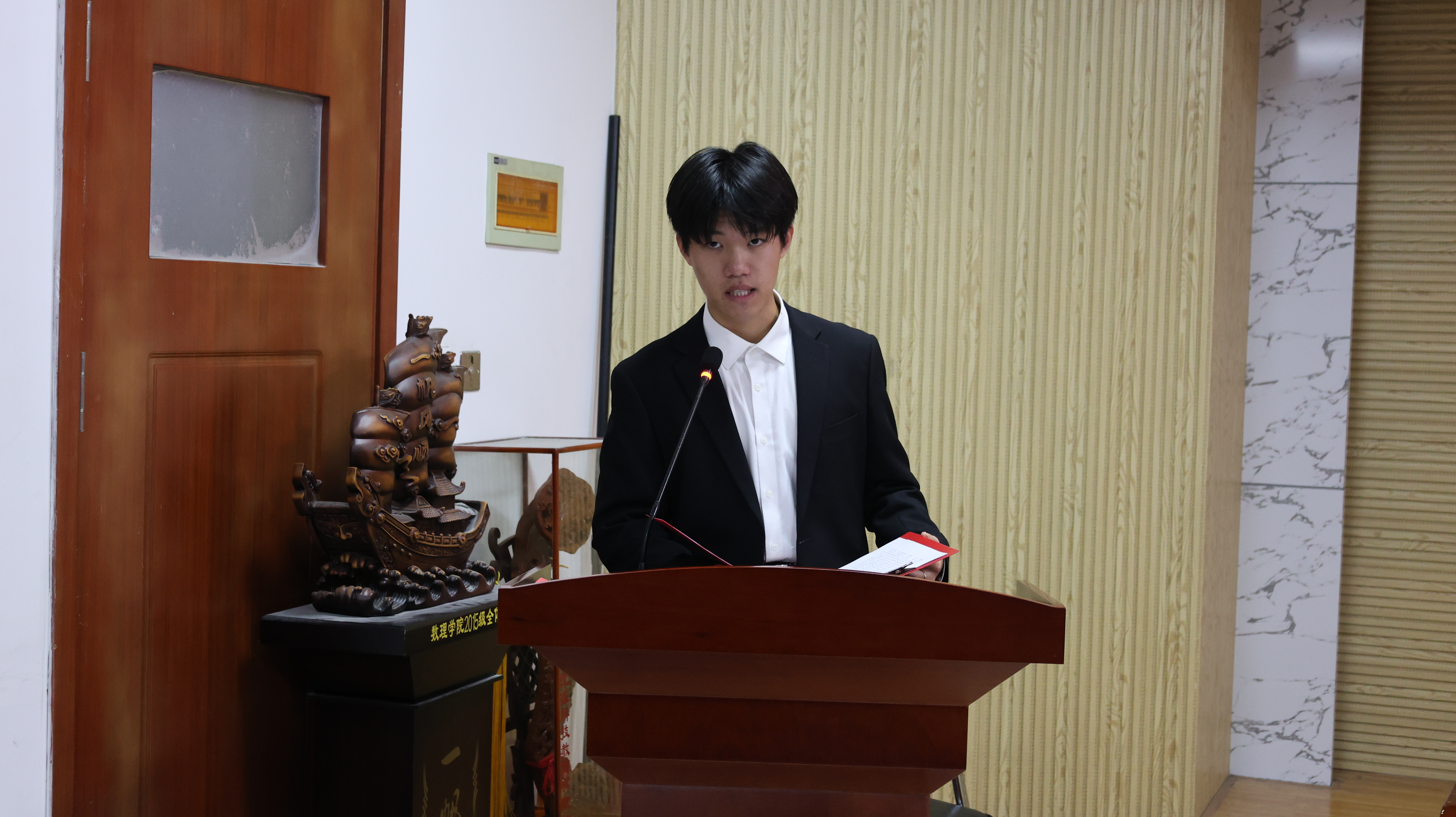 李雯雯为大会致开幕词。她充分肯定了学院学生会和研究生会在服务同学、学风建设、科创实践等方面所做出的积极贡献,并向全院青年学生提出三点希望:一要夯实专业根基,在求知问道中“钻得深、扎得稳”,培养严谨求实的科学精神与创新思维;二要拓展综合素质,在能力提升中“走得远、立得高”,积极参与实践锻炼,增强团队协作能力与社会责任感;三要勇担时代使命,在人生追求中“望得广、行得正”,将个人理想主动融入国家发展大局。她强调,新一届学生会、研究生会要继承学院优良传统,勇于开拓创新,团结带领全院同学以更加饱满的热情和昂扬的斗志投身学习与实践,在实现个人价值的同时,为学校和学院发展贡献青春力量。