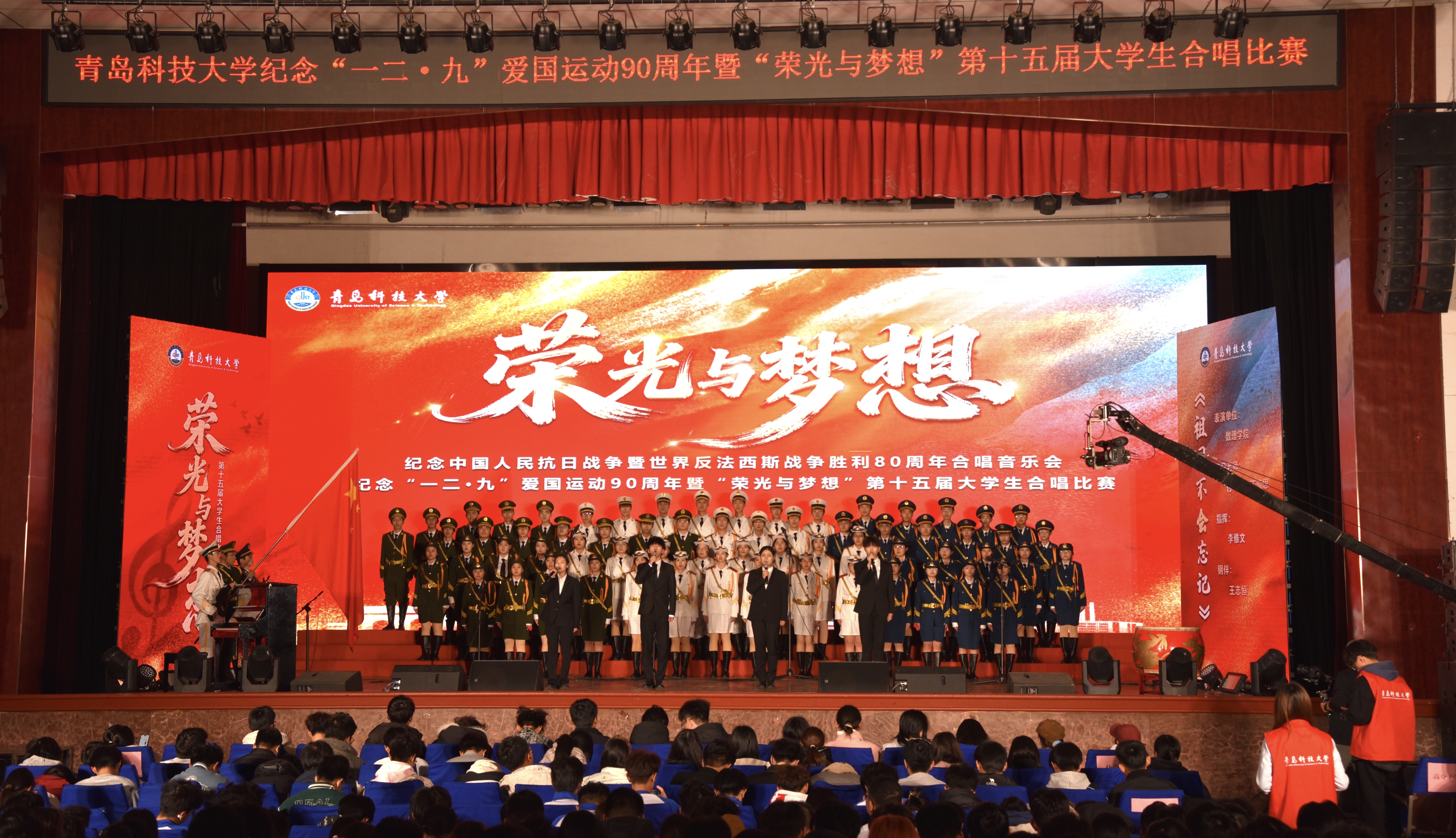 12月9日下午,学校纪念中国人民抗日战争暨世界反法西斯战争胜利80周年合唱音乐会、纪念“一二·九”爱国运动90周年暨“荣光与梦想”第十五届大学生合唱比赛在四方校区西礼堂举办,8x8x