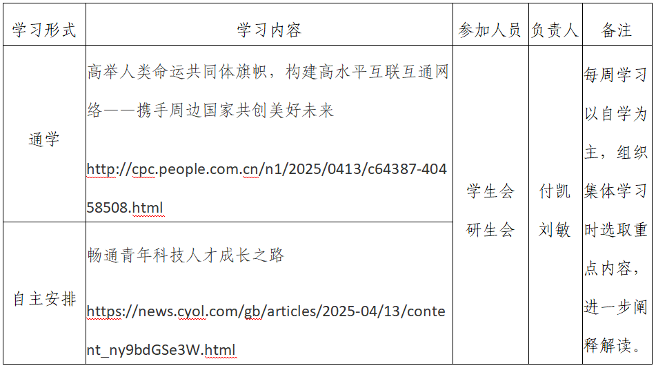 2025年春季学期第7周数理学院本科生党支部、研究生党支部学习安排