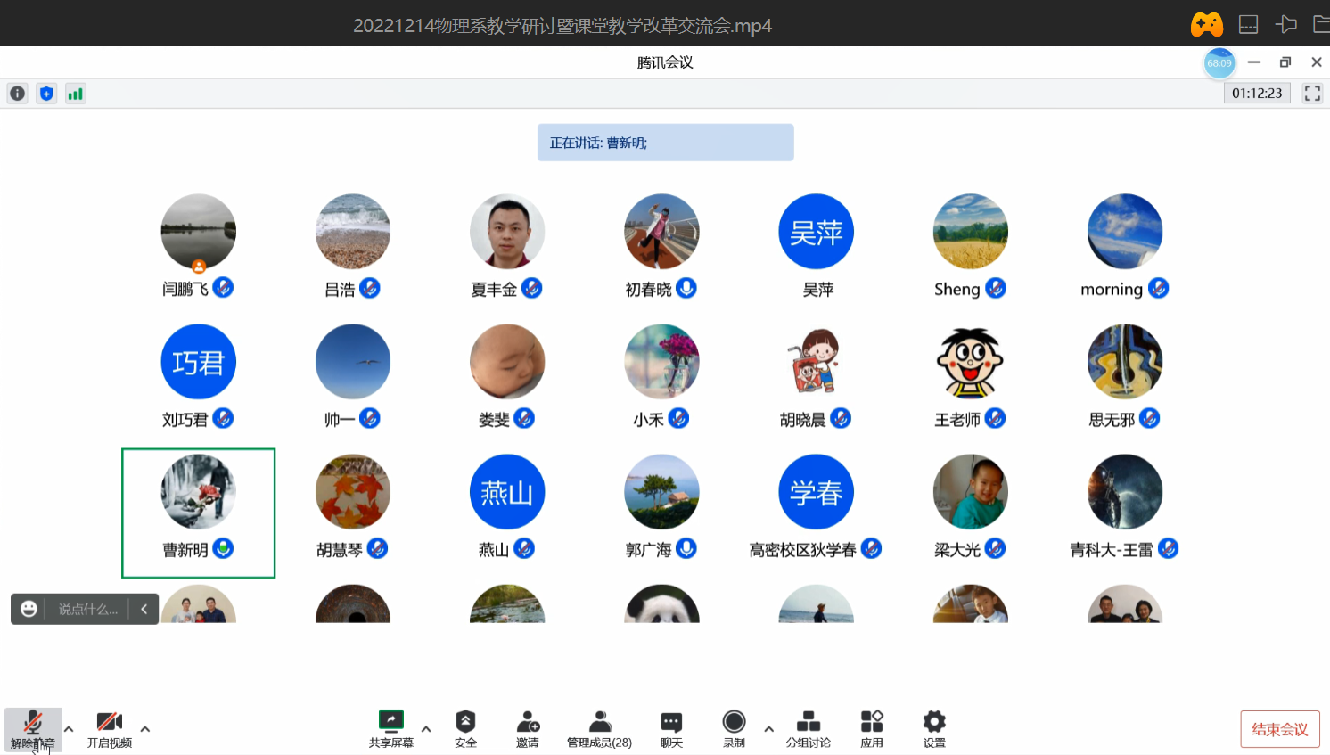 副院长郭广海、教务处教研科科长曹新明、物理系全体教师及来自高密、黄岛校区物理教师参加,物理系副主任闫鹏飞主持研讨交流会。