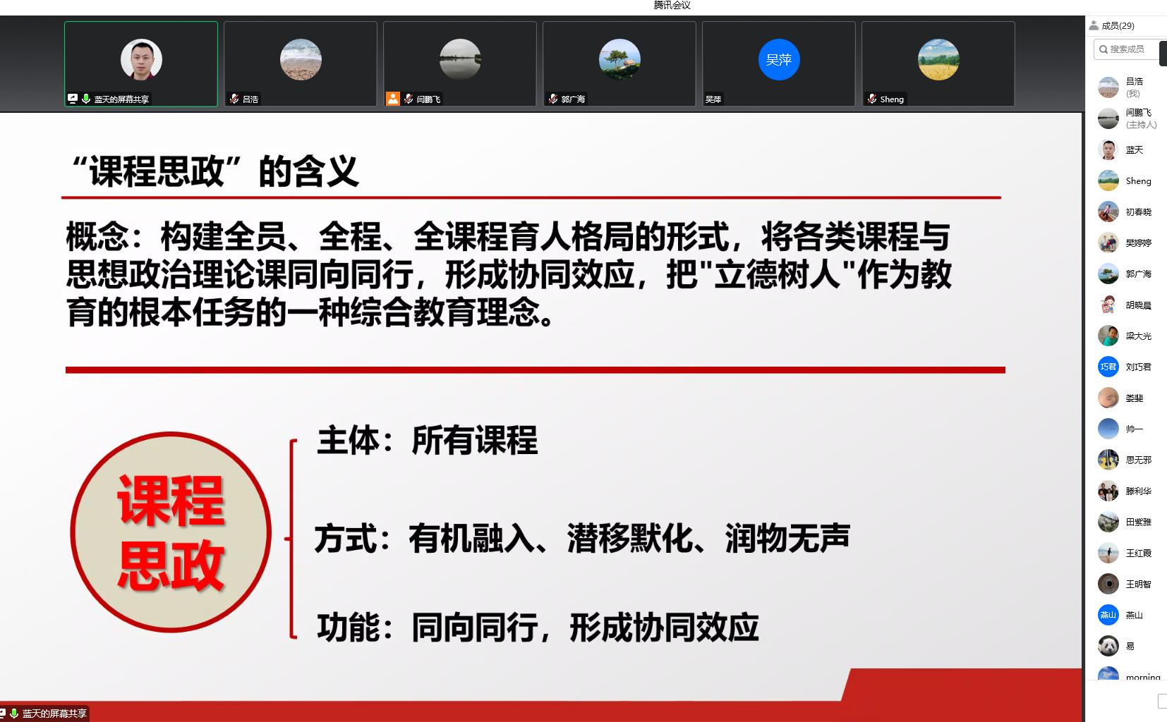 闫鹏飞以《力学》为例,介绍了应用物理学专业课开展课堂教学改革的举措和效果,向老师们分享了BOPPPS教学模式在课堂教学改革中的实践。吕浩、夏丰金、初春晓三位老师分别从课堂教学改革的模式及措施探索、课程思政在物理课程中的融入、课堂教学改革中如何充分调动学生的参与度等方面做了交流,分享了我校物理教学的学情分析、翻转课堂的实施、物理思维的培养、学习通平台的使用、过程性考核的实施、课程论文的考核等。围绕课堂教学改革,与会教师展开了热烈的讨论,大家一致表示,课堂教学改革是适应新形势、融入新格局的重要方式,是促进物理教学成果提升的有效途径,要群策群力、集思广益,把改革做好。