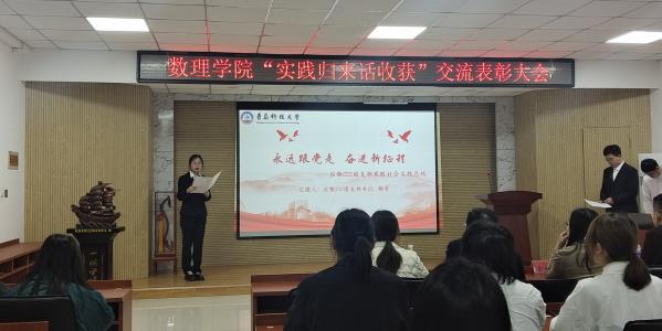 会议对寒假社会实践先进个人和先进集体进行了表彰。会上,寒假社会实践先进个人代表应数222班学生王柯元以“青春志愿行、奉献新时代”为主题,从“初相识”“行实践”“展宣传”“享收获”四个方面做了汇报发言。寒假社会实践先进集体代表应物222团支部书记都雪以“永远跟党走、奋进新征程”为主题,全方位展示了该团支部在寒假社会实践中的丰富形式和良好成效。