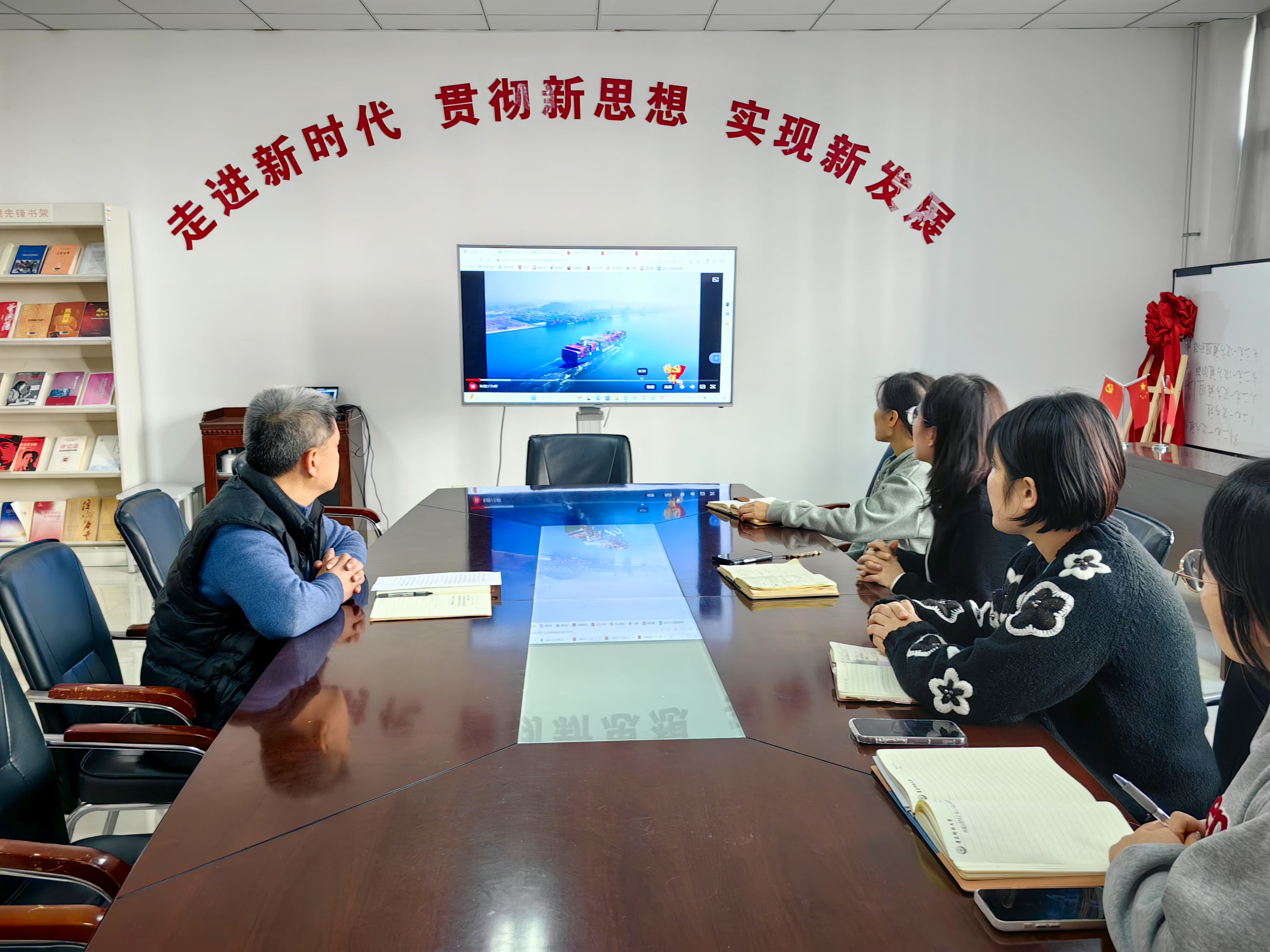 科级及以下干部、党员在学院210会议室就《深入学习贯彻习近平总书记关于全面深化改革的一系列新思想、新观点、新论断和党的二十届三中全会精神》《榜样9》进行集中学习研讨视频专题培训,结合学习贯彻党的二十届三中全会精神,围绕学习内容进行交流研讨。
