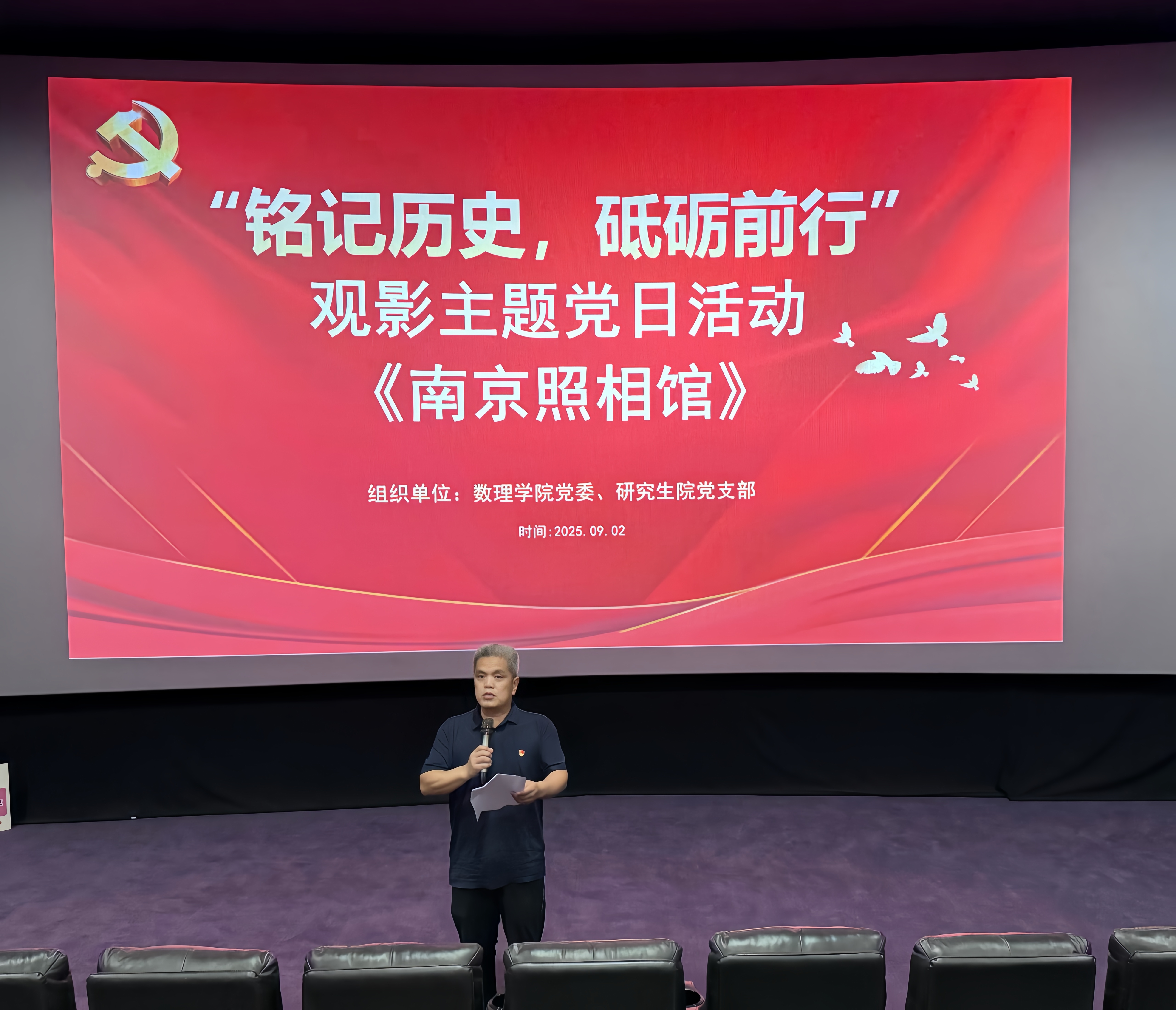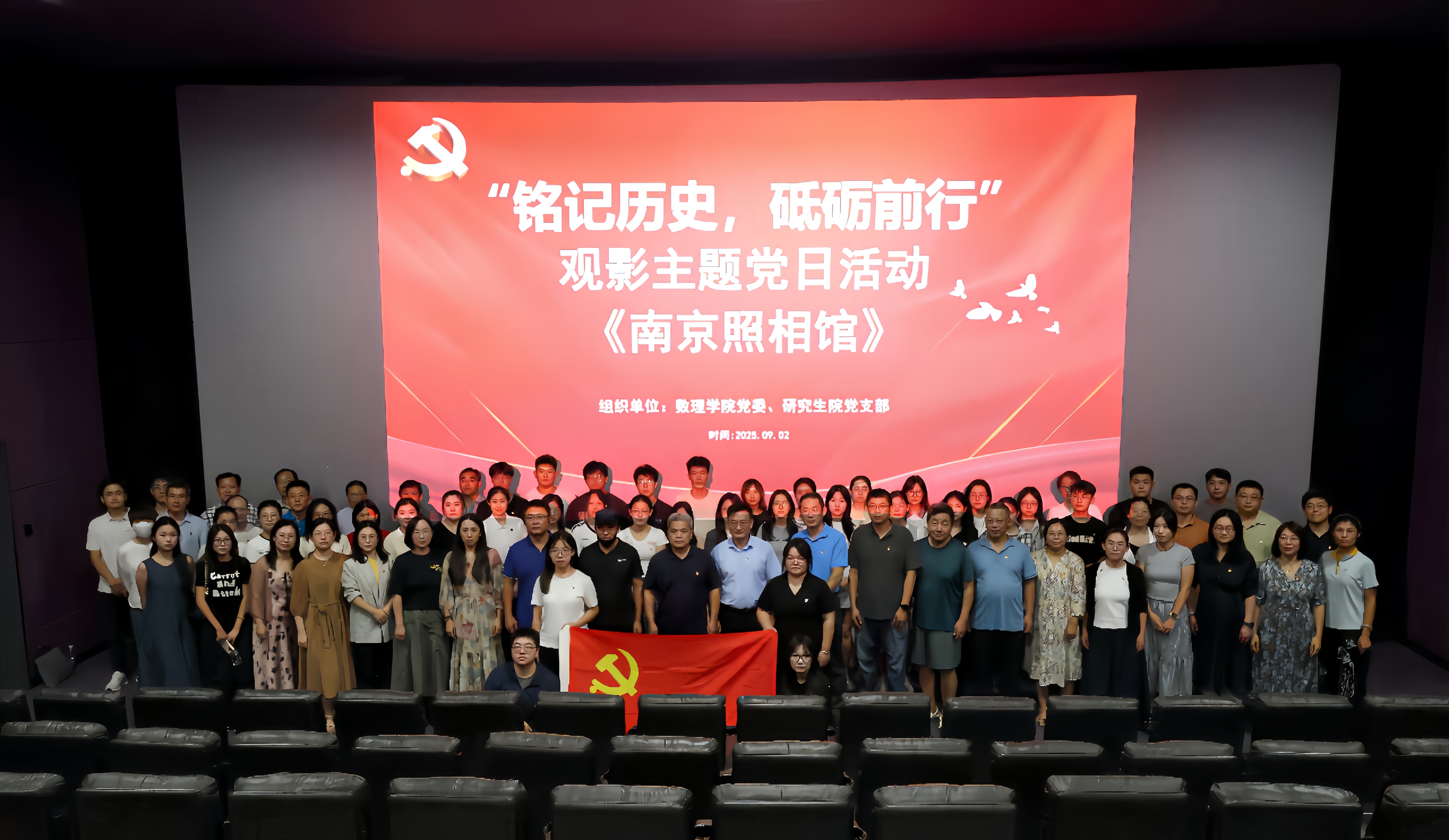 党委与研究生院党支部开展“铭记历史,砥砺前行”主题党日活动,组织两单位党员师生共80余人集体观影《南京照相馆》,通过光影重温历史、汲取奋进力量。