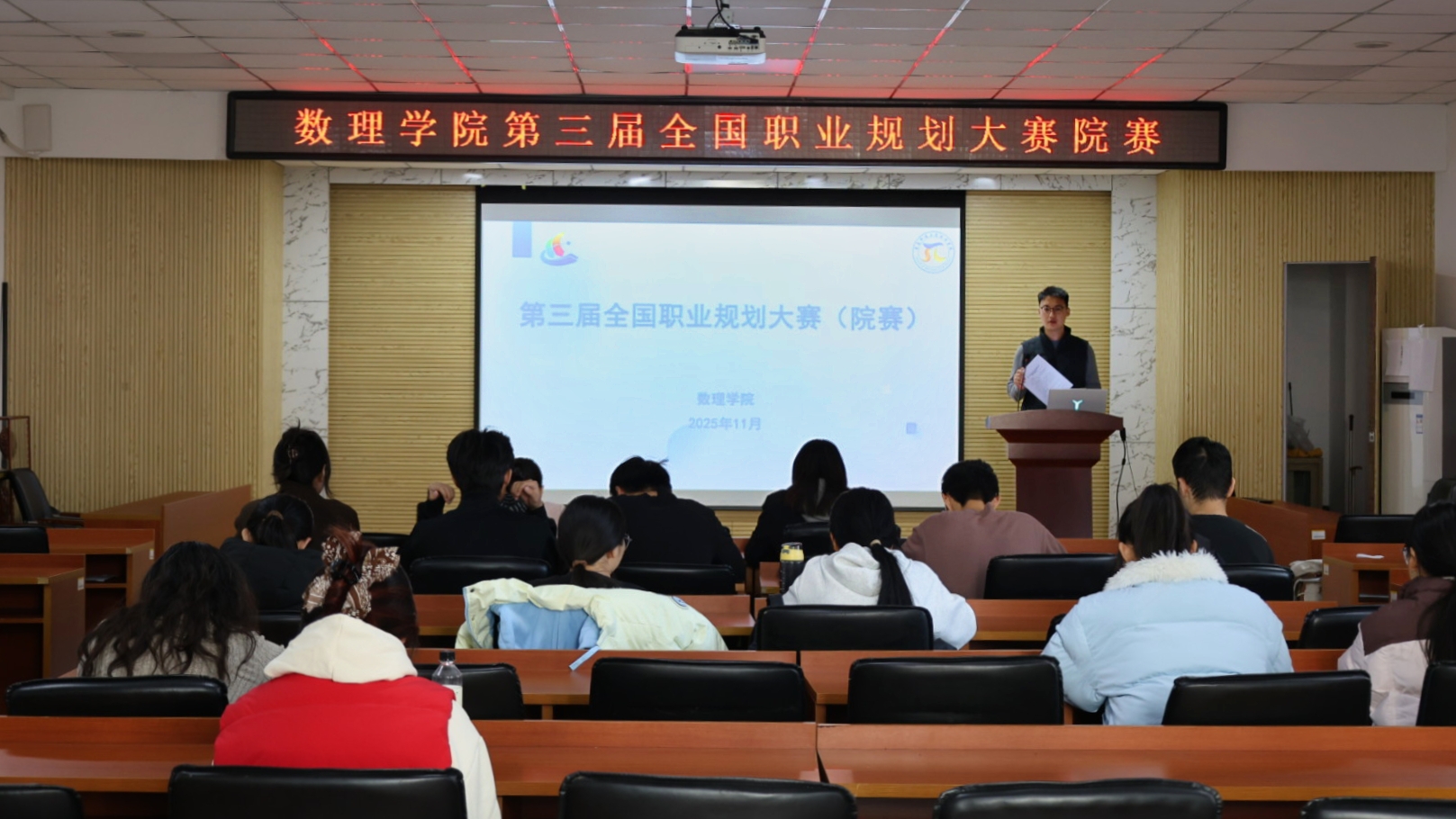 举办第三届大学生职业规划院级选拔赛。本次大赛以“筑梦青春志在四方,规划启航职引未来”的核心主题,设置成长赛道与就业赛道双赛道。学院团委书记付凯、辅导员刘敏、丁璇思担任评委。
