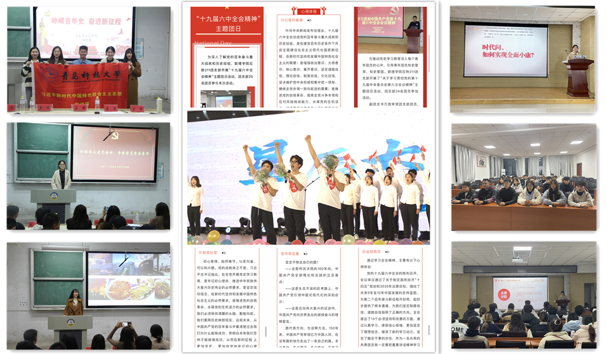 精心组织好宣讲宣传,以党建带团建,通过党支部理论学习、支部书记讲党课、党员故事汇、青马工程培训班、主题团日活动、青年大学习等形式,依托学习强国、微信公众号、数理小π、易班等新媒体渠道,构建党员干部带头讲、优秀典型示范讲、宣讲骨干广泛讲、线上线下同步讲的宣讲体系,开展对象化、分众化、互动化的线上线下宣讲新形态。推动“文艺+宣讲”深度融合,把十九届六中全会精神融入迎新晚会现场,《星辰大海》诗朗诵节目用学生喜闻乐见的方式发出坚强号召,向青年学生宣传全会精神,传递党的声音。