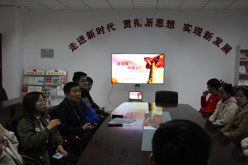 2018年11月6日下午四点,8x8x 党总支学生党支部书记葛夫国及各位学院党员在党建活动室召开了“政党廉,中国心”主题党支部大会。
