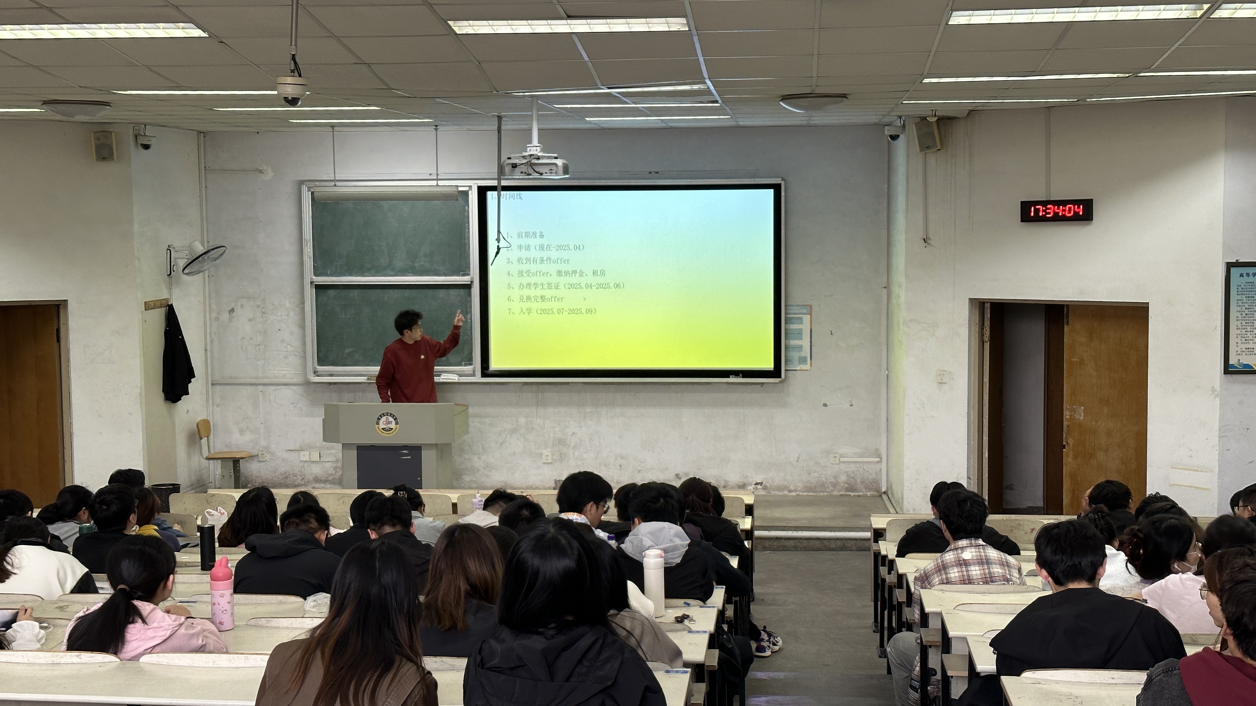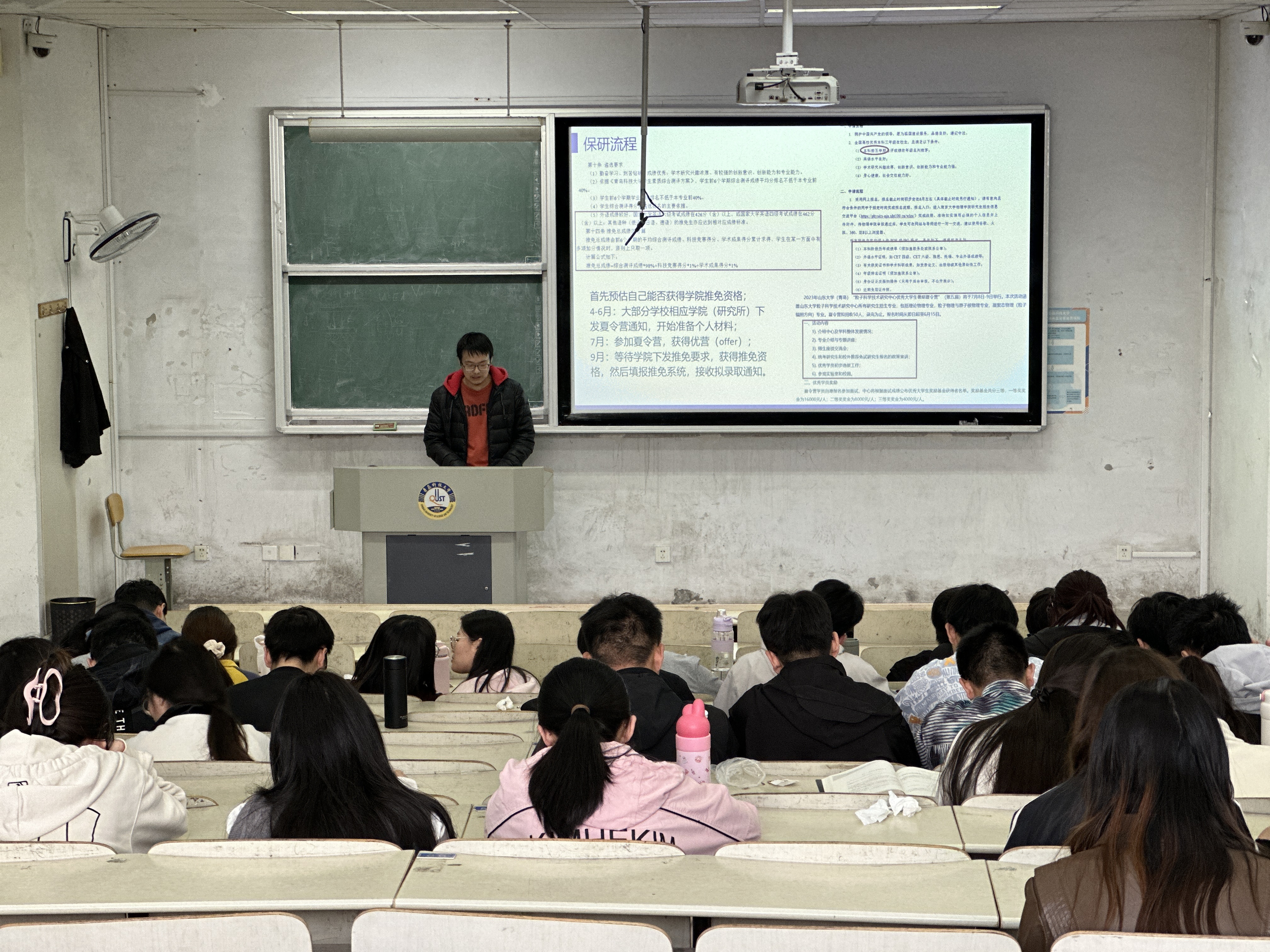 随后,四位优秀的学长学姐,就他们本人就业、考研的实际情况,耐心分享自己的丰富经验,为同学们提供了非常有价值的参考,帮助大家打破“信息差”。孙雯分享她考取银行的宝贵经验。她强调“金九银四”,以此告诉大家秋招的重要性,叮嘱21级学生把握机会,投放简历。成功考取中国海洋大学的李欣轩的分享着重于考研备考,他着重强调了择校的重要性。已经成功直博北京师范大学物理学系的刘政为大家详细介绍了他的保研流程。最后,魏逸飞按照时间线,为大家详细说明了出国留学需要做的前期准备,以及在选择目标国家、学校方面可参考的经验。