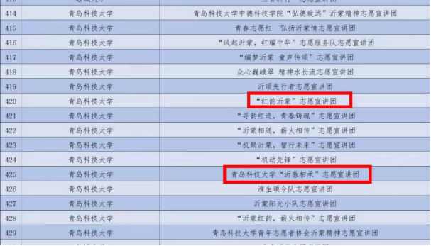 近日,团中央青年志愿者行动指导中心、共青团山东省委、中共临沂市委联合开展的2024年全国大学生沂蒙精神志愿宣讲活动公布了入选团队名单,8x8x “红韵沂蒙”和“沂脉相承”两个志愿宣讲团成功入选。