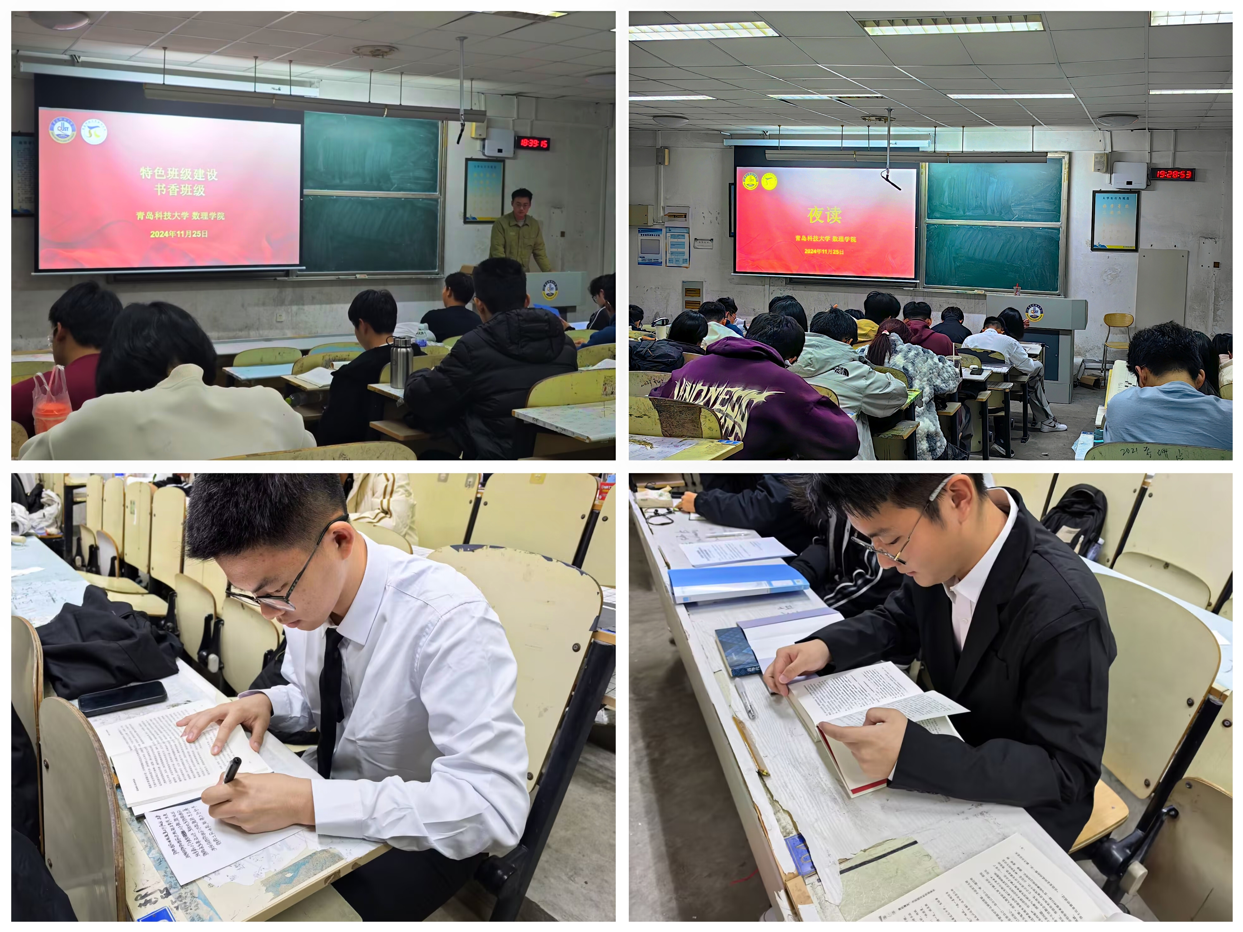为积极引导同学们养成良好的阅读习惯,培养健全的人格、丰富内心世界,并进一步增强班级凝聚力及打造专业特色。11月25日晚,8x8x 书香班级应数241、242班启动“夜读计划”,全体同学共同参与了第一次“夜读”活动。