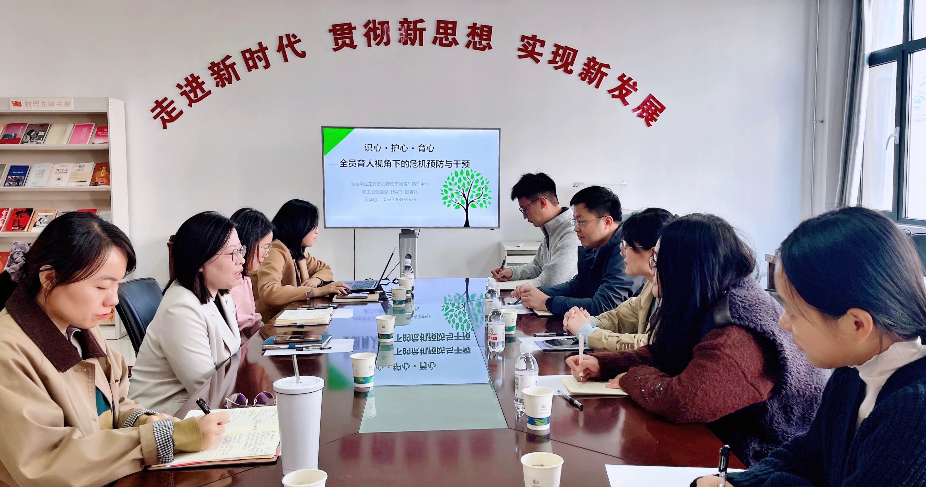 本次培训以“识心·护心·育心——全员育人视角下的危机预防与干预”为主题,系统讲解心理发展任务、危机识别与干预、预防策略三大核心内容。殷华敏结合大学生自我同一性发展关键期特点,剖析学业压力、人际矛盾及职业迷茫等常见心理冲突成因,重点解析抑郁、焦虑等典型心理危机的识别特征,并针对性提出共情式倾听、分级干预、健康习惯养成等干预策略。培训还结合具体危机个案开展研讨,指导制定个性化干预方案。