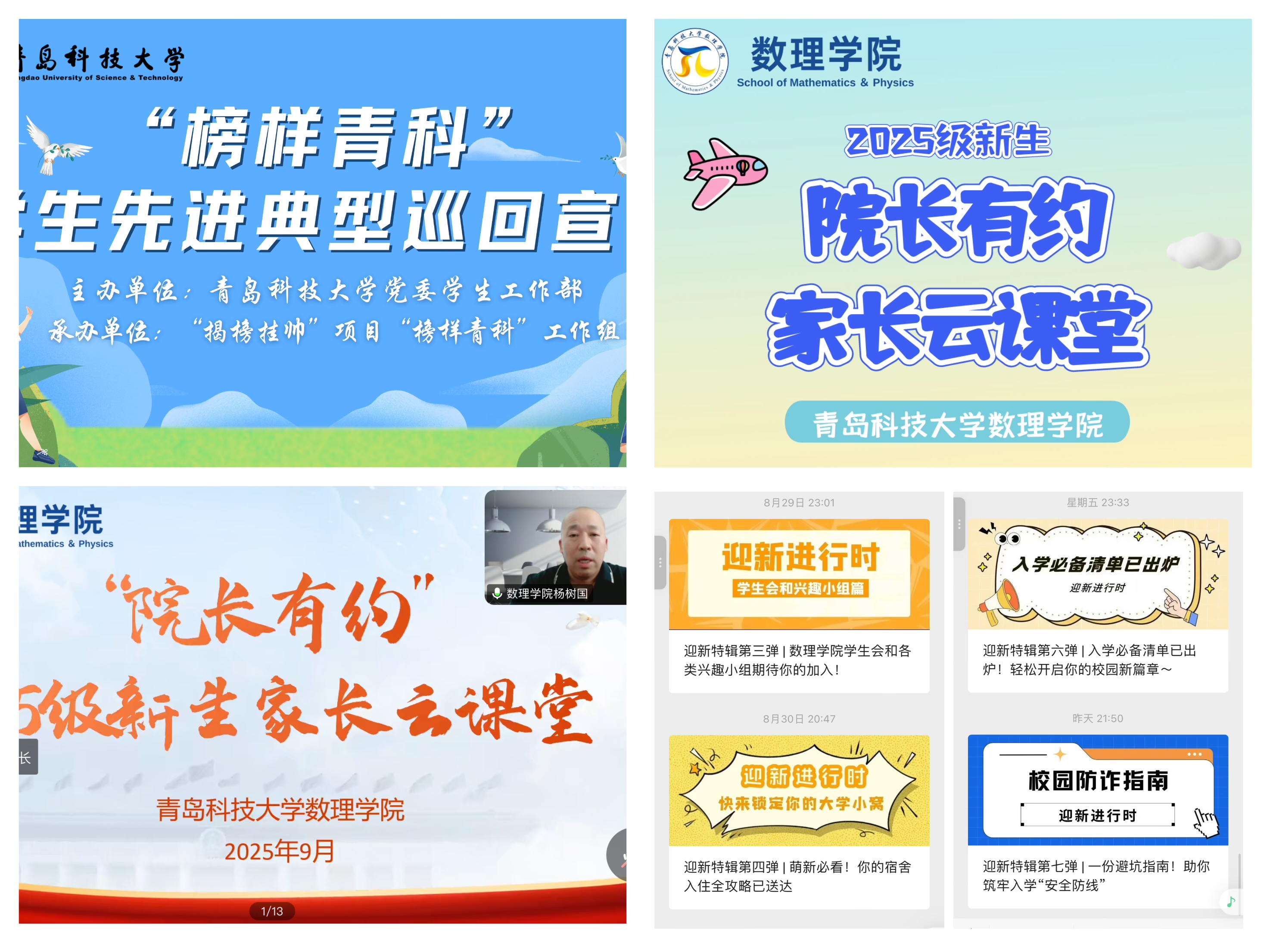 于暑期率先启动“数理启航”线上迎新系列活动。通过组织优秀高年级学生开展线上宣讲、经验分享和答疑互动,实现朋辈引领不断线;开设“院长有约·家长云课堂”,搭建家校沟通桥梁,帮助家长了解学院培养理念与育人体系,共同助力学生成长;官微开设“迎新特辑”专栏,实现“未见其面,先暖其心”的迎新效果。此外,学院还全面开展新生情况摸排,建立“一人一策”关怀档案,重点关注家庭经济困难、身心健康异常等特殊群体,为后续精准帮扶和教育管理奠定坚实基础。这一系列前置举措,真正实现了“未入校、先导航”,让新生和家长感受到学院的用心与温度。